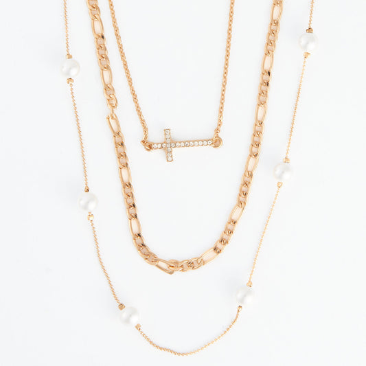 Carrie Pearl & Cross Layered Necklace
