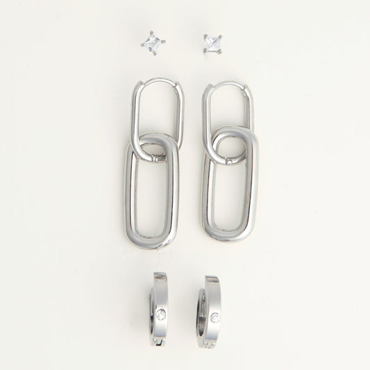 Narelle Waterproof Double Linked Hoop Earring Trio