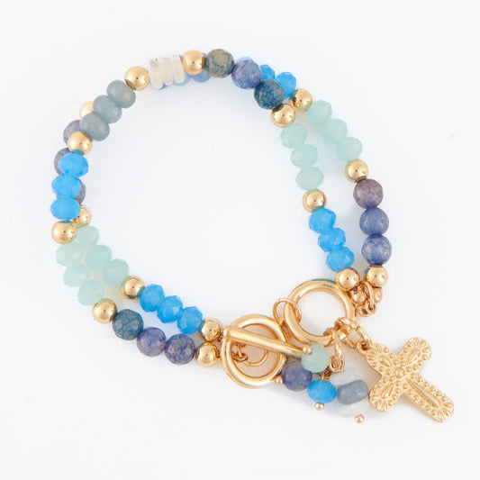 Kamryn Genuine Dumortierite Multi Row Inspirational Charm Bracelet