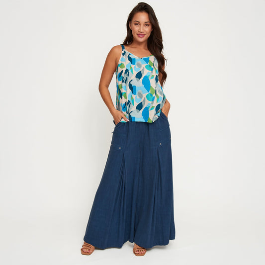 Top SellerDelaney Wide Leg Tiered Chambray Pants