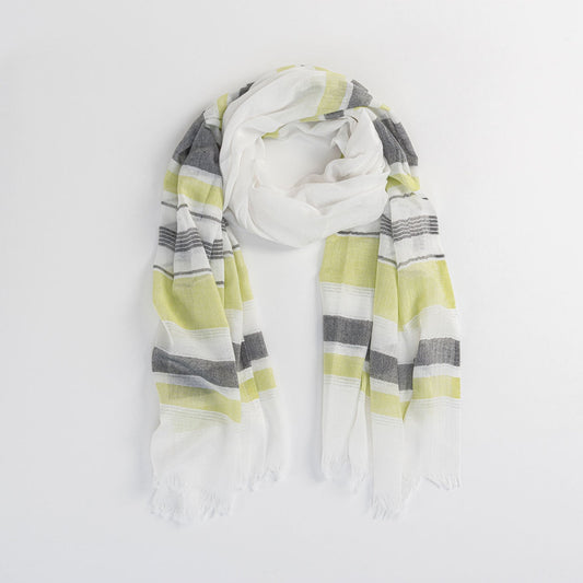 Green Lurex Stripe Frayed Hem Lightweight Scarf