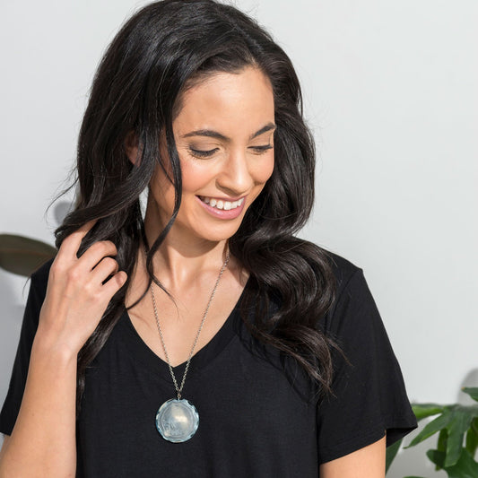 Engraved Turtle Painted Tide Pool Silver Pendant Necklace