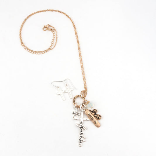 Julia Faith Cross Charm Pendant Necklace & Earring Set