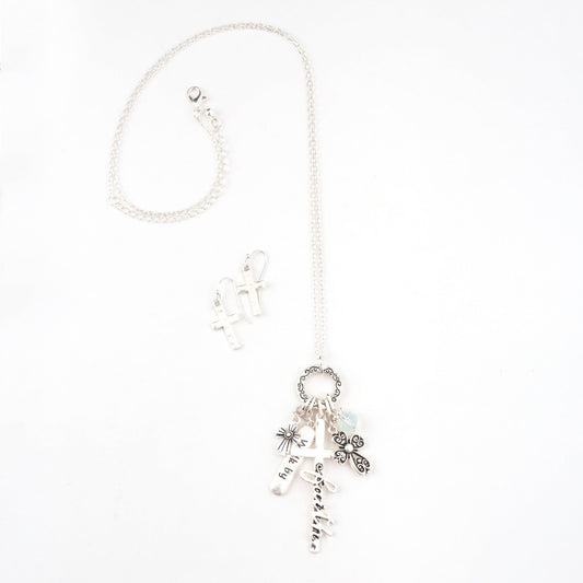 Julia Faith Cross Charm Pendant Necklace & Earring Set