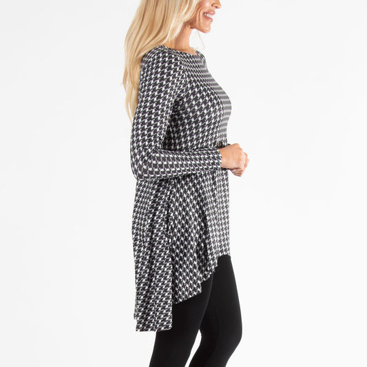 • Black Geo Plaid Asymmetrical Wrap Sweater With Fringe Detail