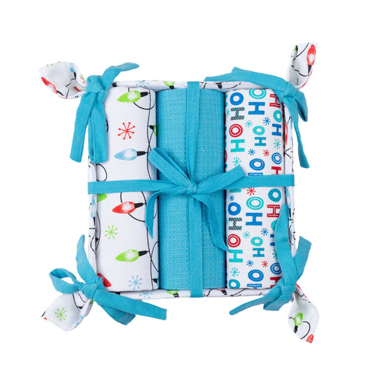 Top Seller On Sale4 Piece Bright Christmas Tea Towel & Bread Basket Set