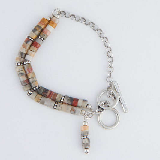 Darby Genuine Agate Multi Row Toggle Bracelet