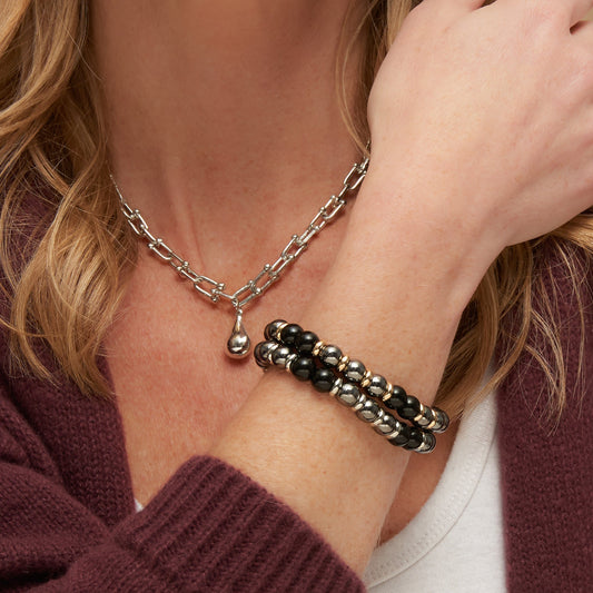 Clea Beaded Hematite Stretch Bracelet