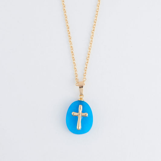 Eleni Genuine Blue Aventurine Cross Charm Necklace