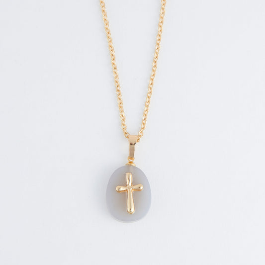 Eleni Genuine Gray Agate Cross Charm Necklace