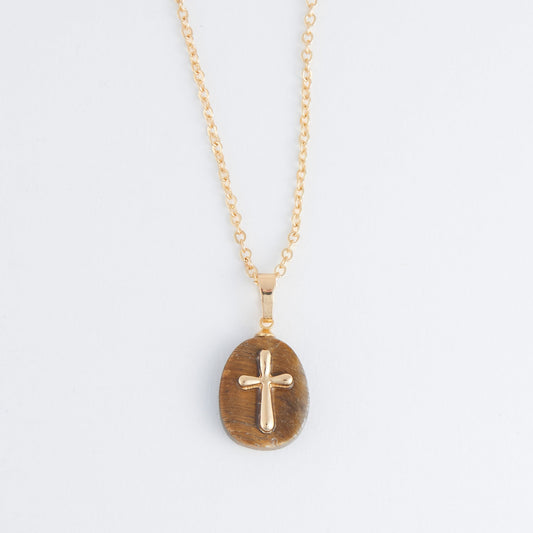 Eleni Genuine Tiger's Eye Cross Charm Necklace
