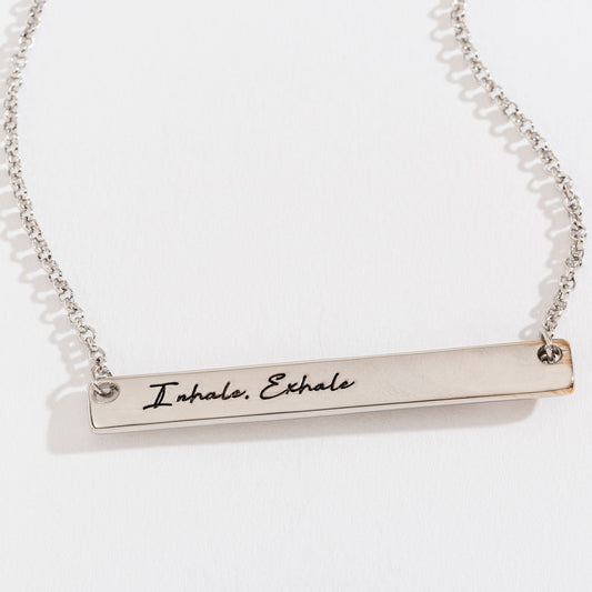 Breathe Inspirational Silver Bar Necklace