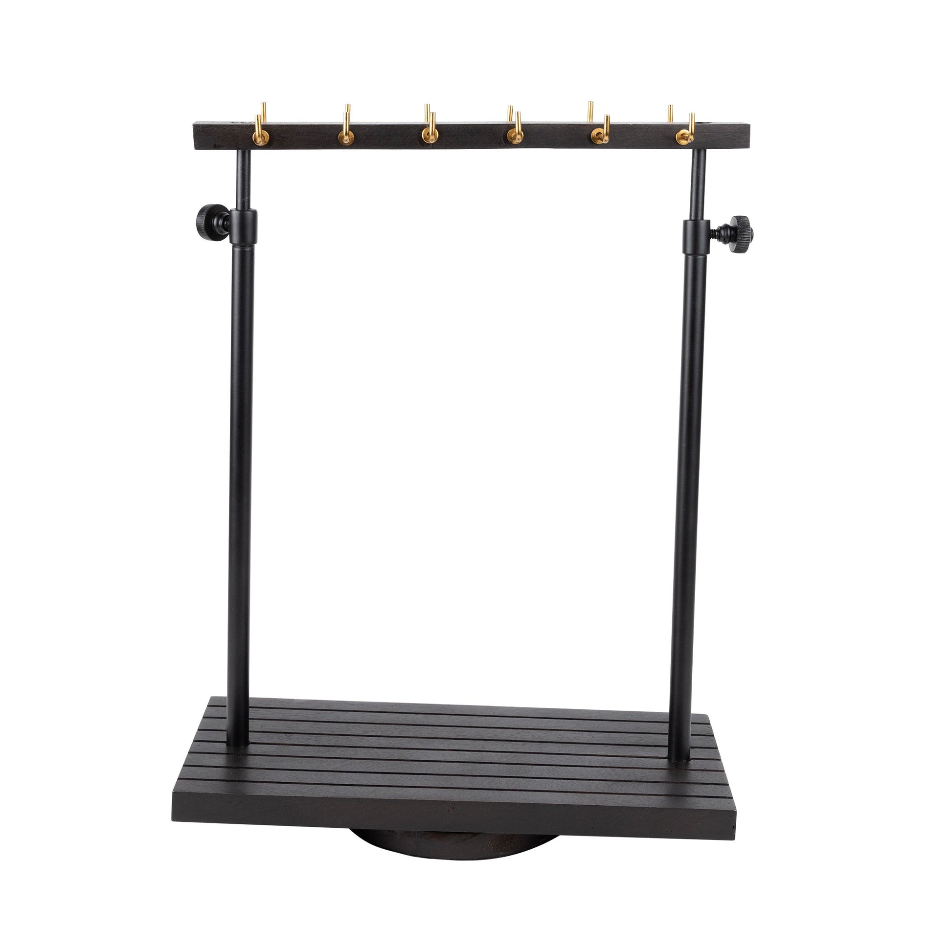 Display your jewelry in style with the 12-Peg Wooden Frame Adjustable Spinner Display. Featuring a chic dark brown wood with 12 evenly spaced pegs, this piece makes organizing and storing jewelry a breeze.