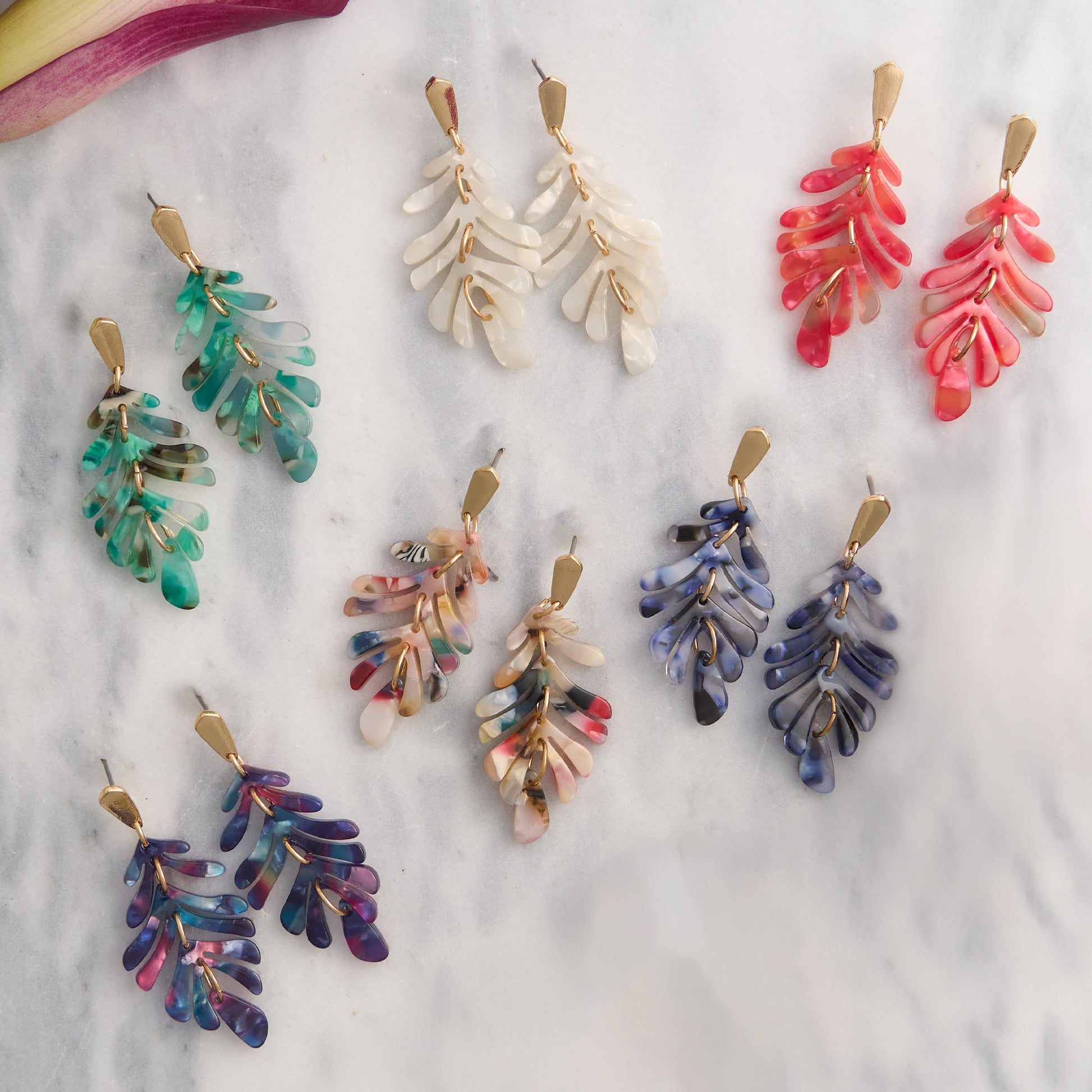 Add a pop of color to your wardrobe with the 12 piece Ailani Feather Earring Assortment. Offering a fun feather design in vibrant colors with gold detailing and classic post style, these earrings are easy to style and bring a touch of fun to any look. Assortment includes 2 of each color.