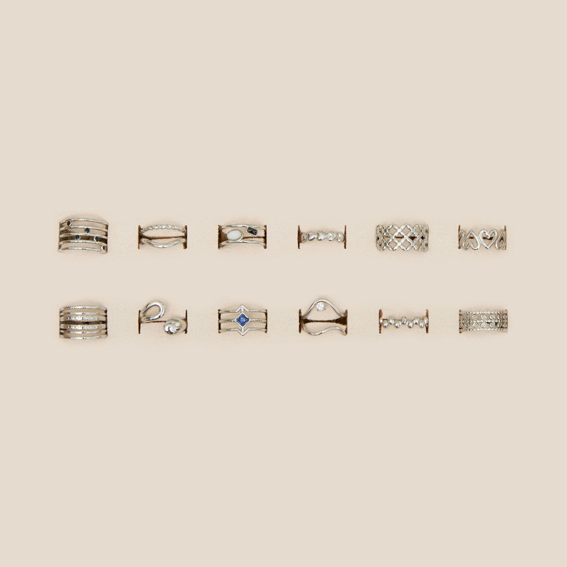 12 Piece Narelle Waterproof Silver Ring Assortment