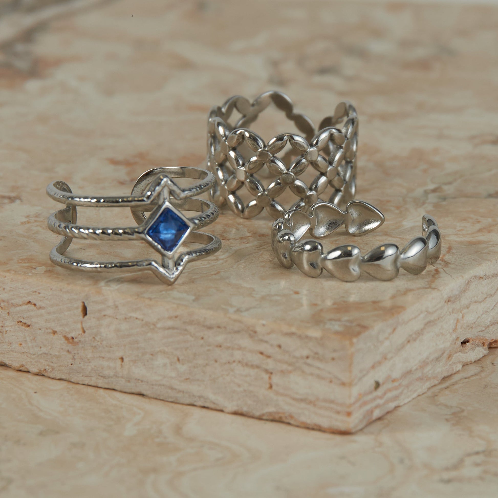Rings are adjustable and fit comfortably from a standard size 5-9