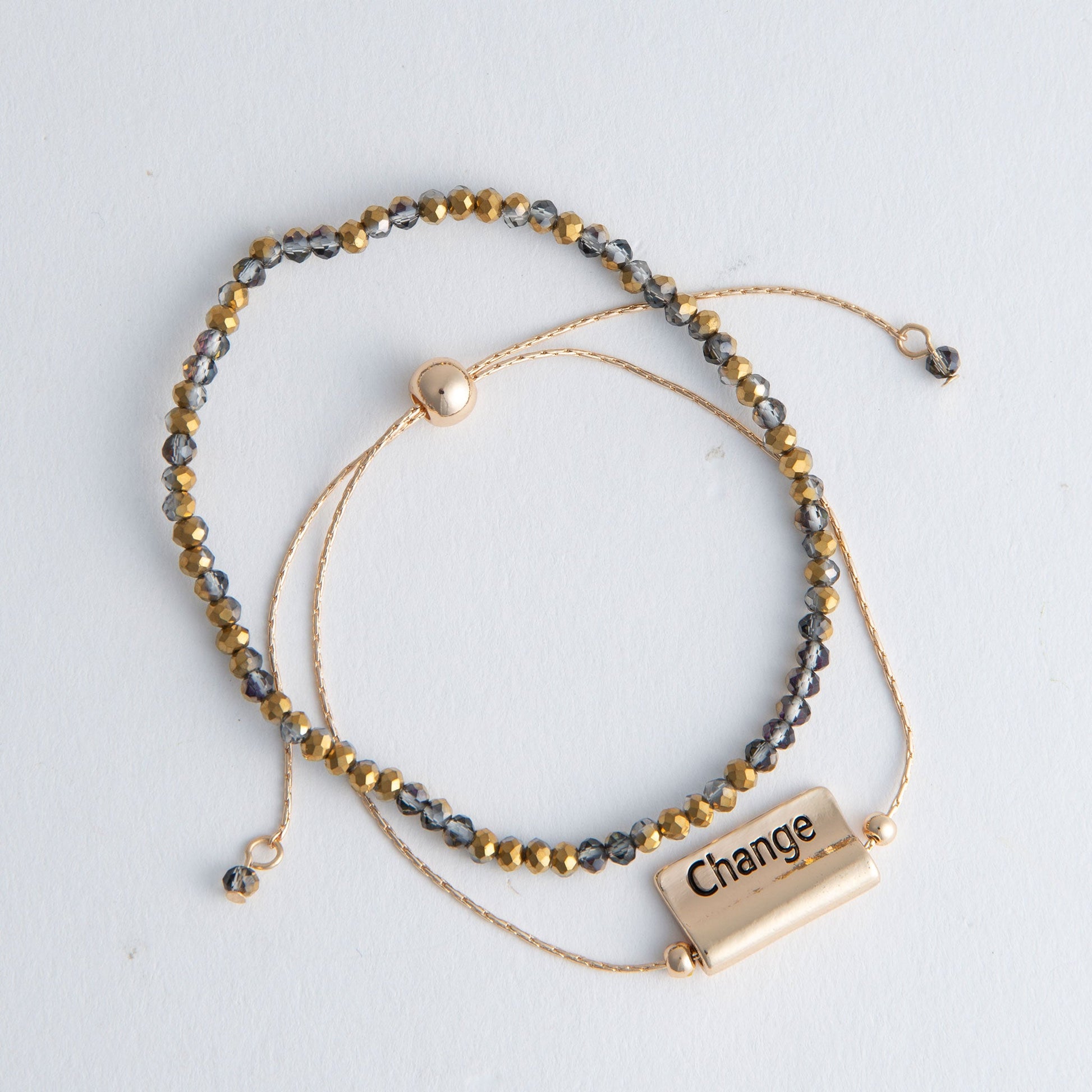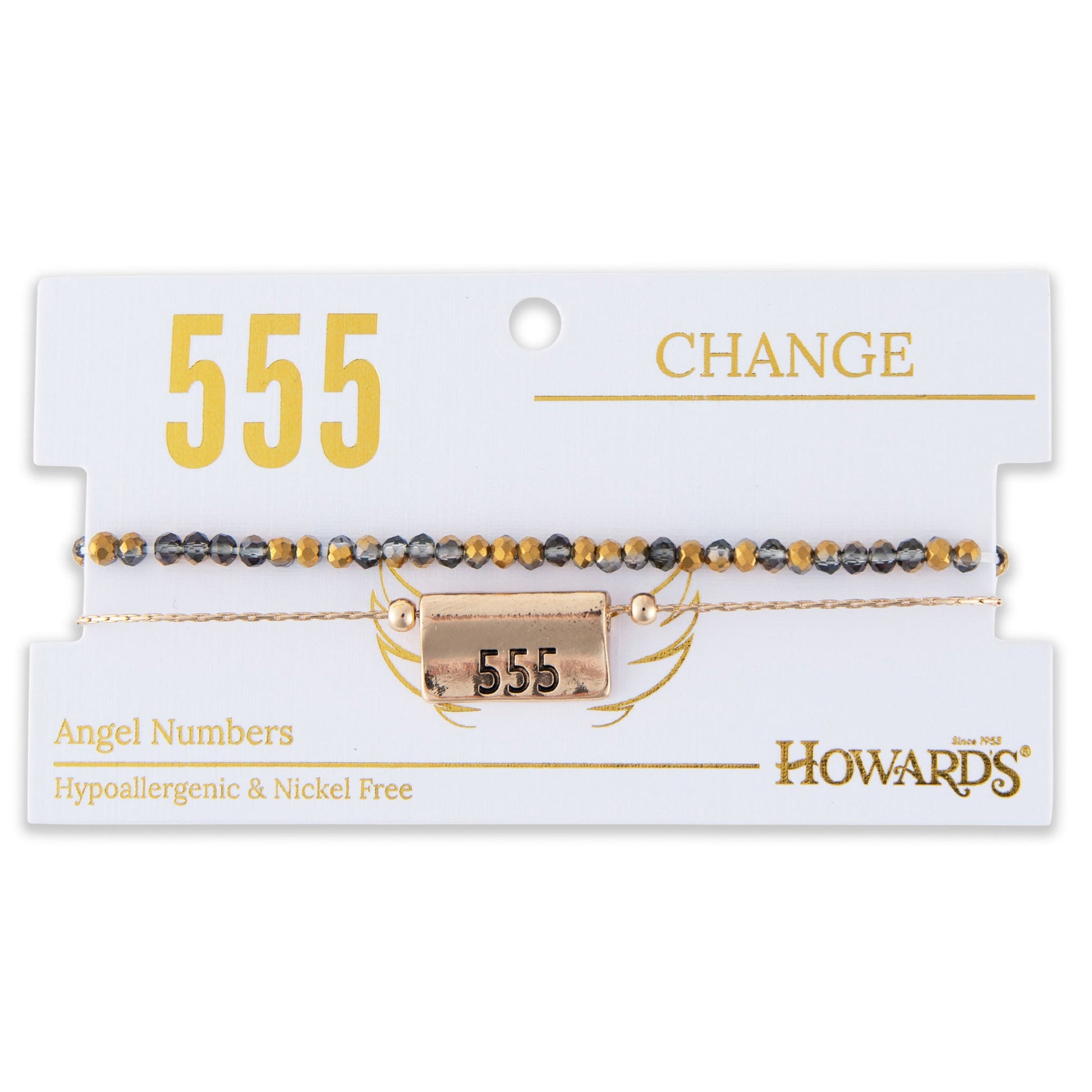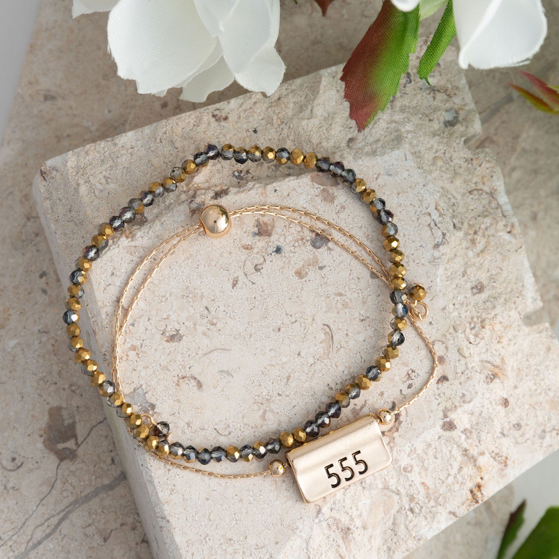 Elevate your spiritual journey with the 555 Change Angel Numbers Bracelet Set. Featuring two bracelets, one dainty and golden and stamped with the Angel numbers for Change, the other a trendy bronze beaded band, this pair brings style and meaning to any outfit.