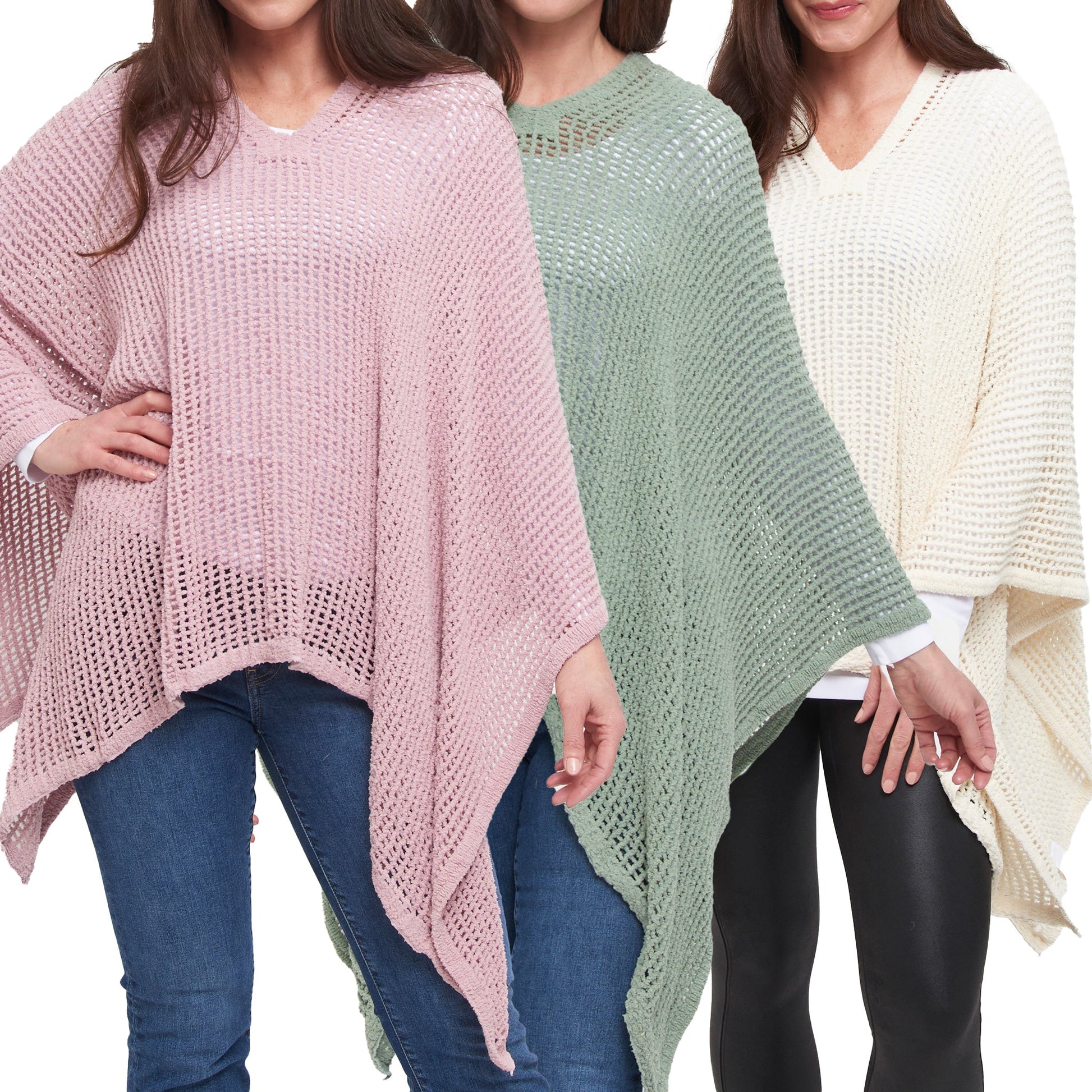 Cozy and cute! The 6 Piece Presley Open Sweater Knit Poncho Assortment features a flattering draped design and chic V-neck collar. Easy to style over your favorite outfit, this poncho is an absolute must-have for those colder months.