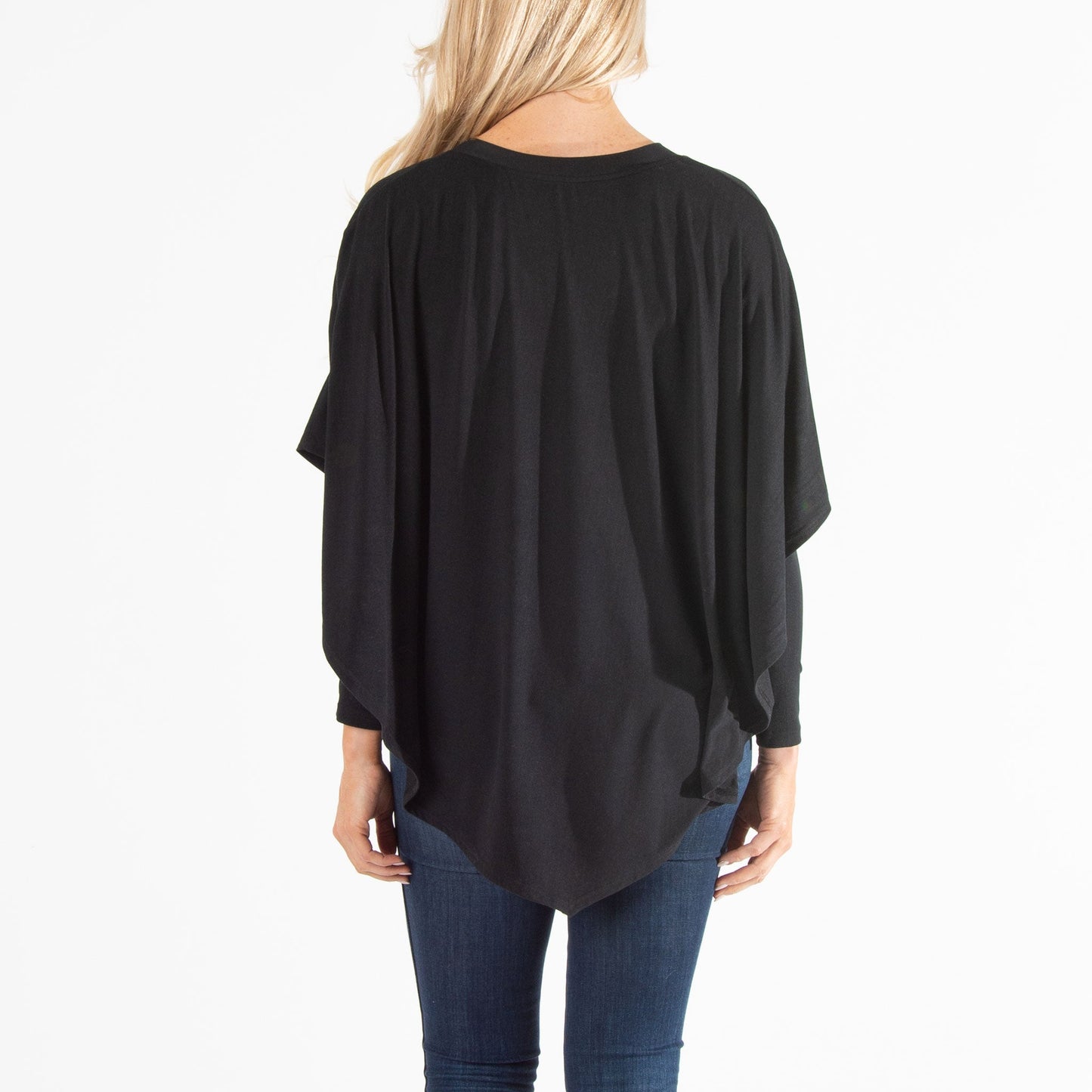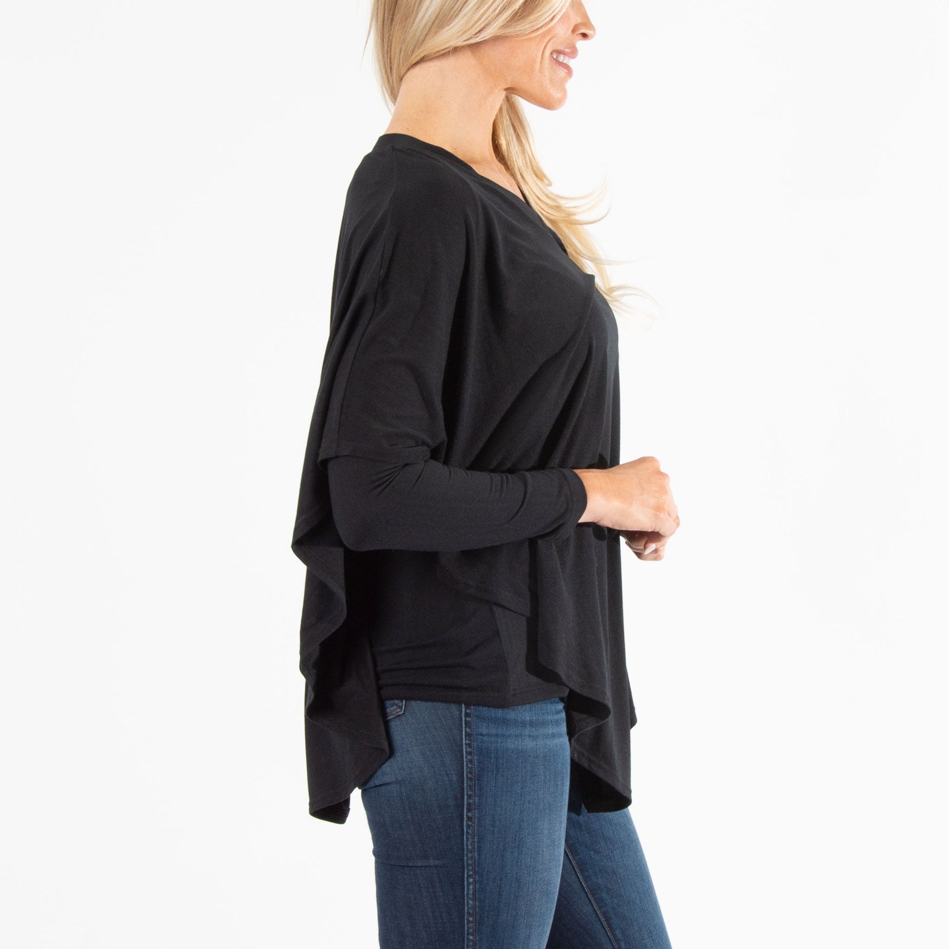 Stay comfortable and on trend with the Addie Poncho Top. Featuring a brushed jersey fabric, with an inside long sleeve layer and outer v-neck poncho layer, this poncho top is a versatile staple for any closet.