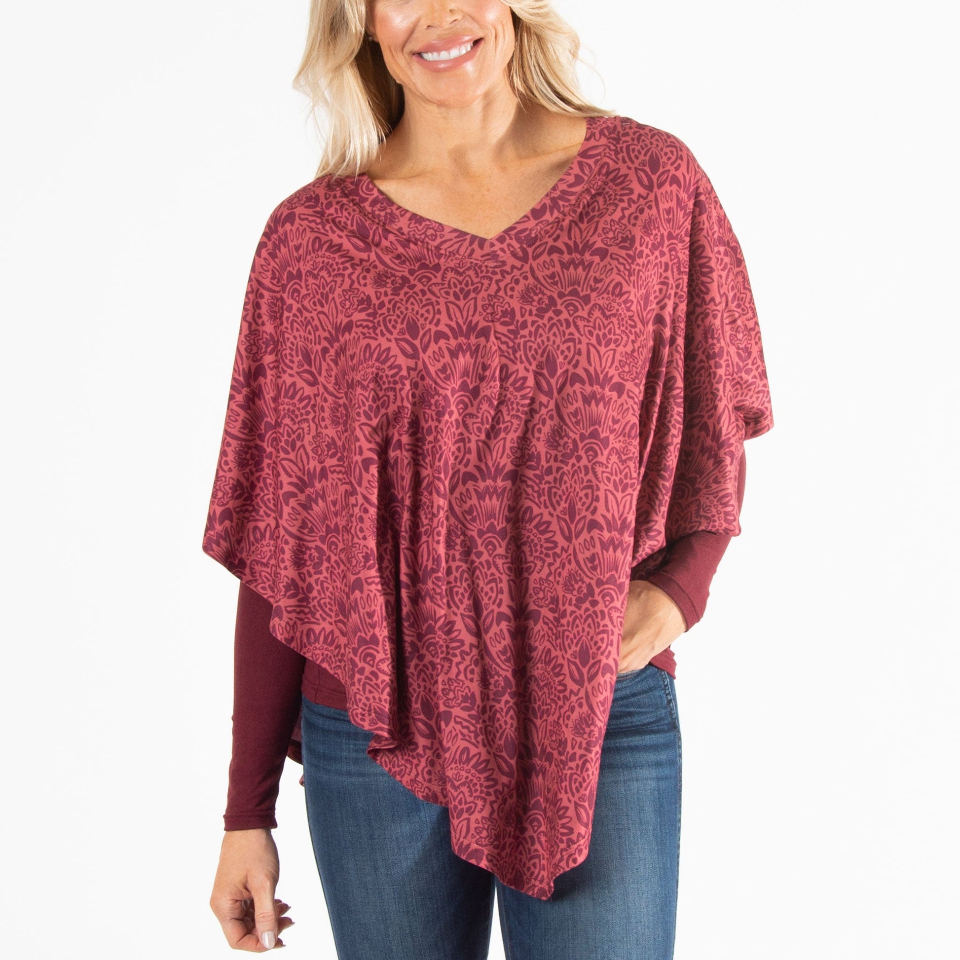 Stay comfortable and on trend with the Addie Poncho Top. Featuring a brushed jersey fabric, with an inside long sleeve layer and outer v-neck poncho layer, this poncho top is a versatile staple for any closet.