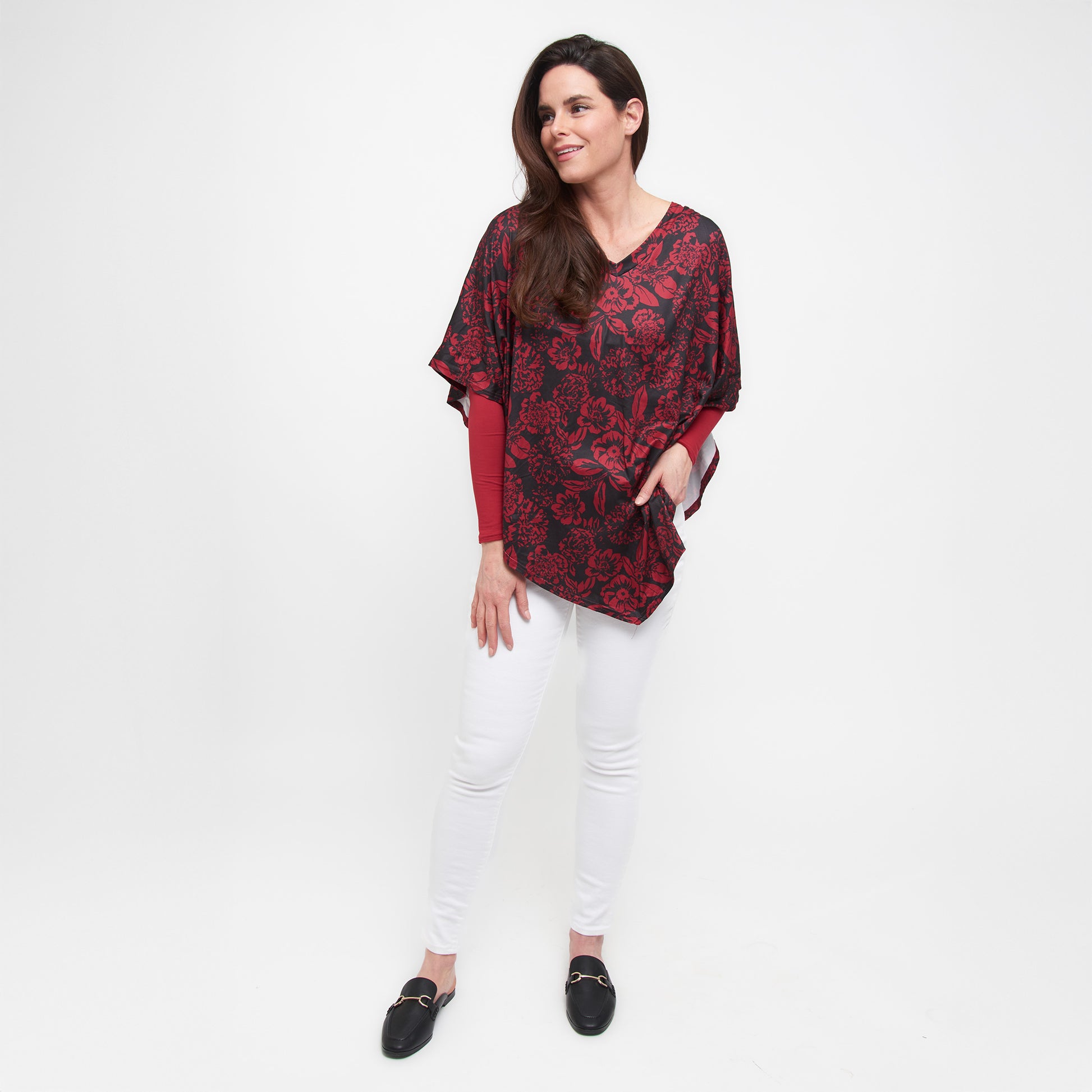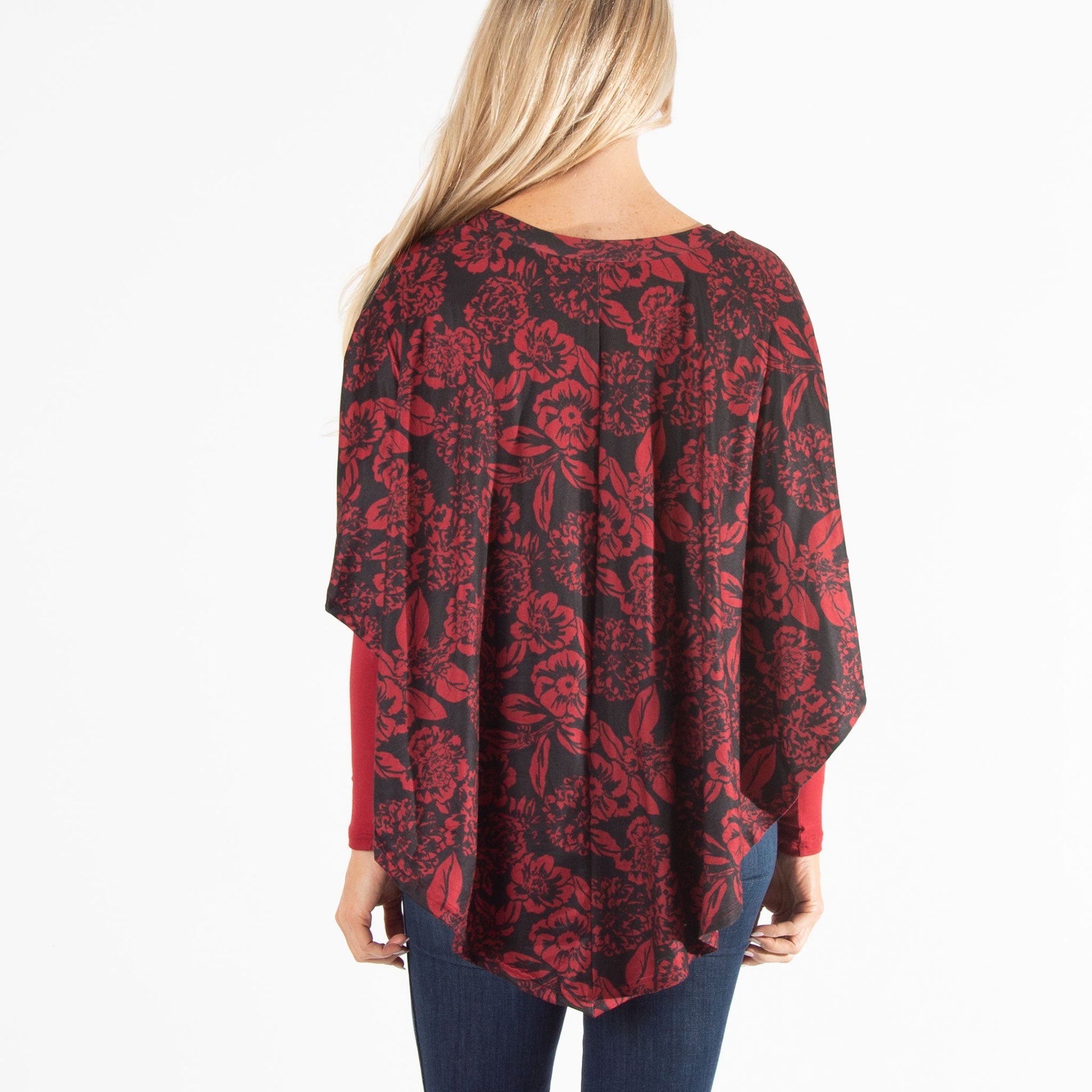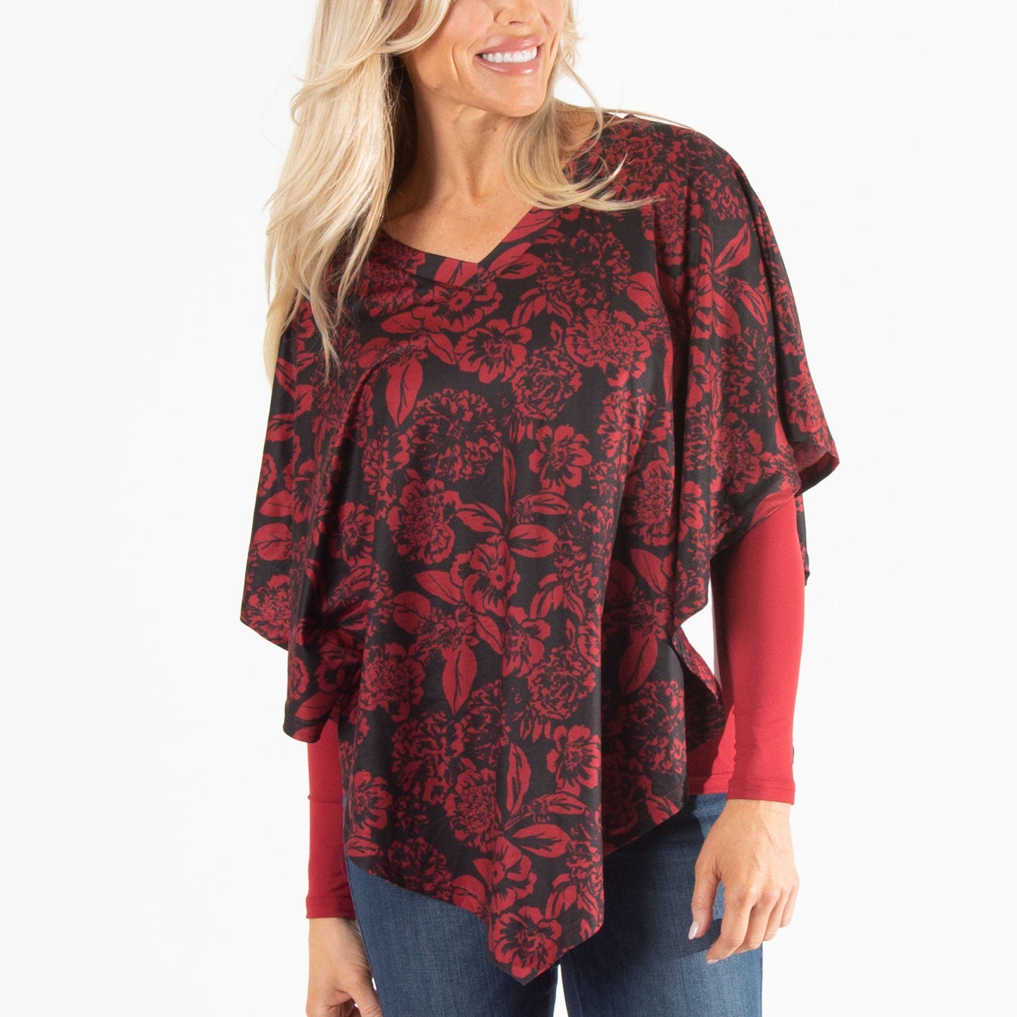 Stay comfortable and on trend with the Addie Poncho Top. Featuring a brushed jersey fabric, with an inside long sleeve layer and outer v-neck poncho layer, this poncho top is a versatile staple for any closet.