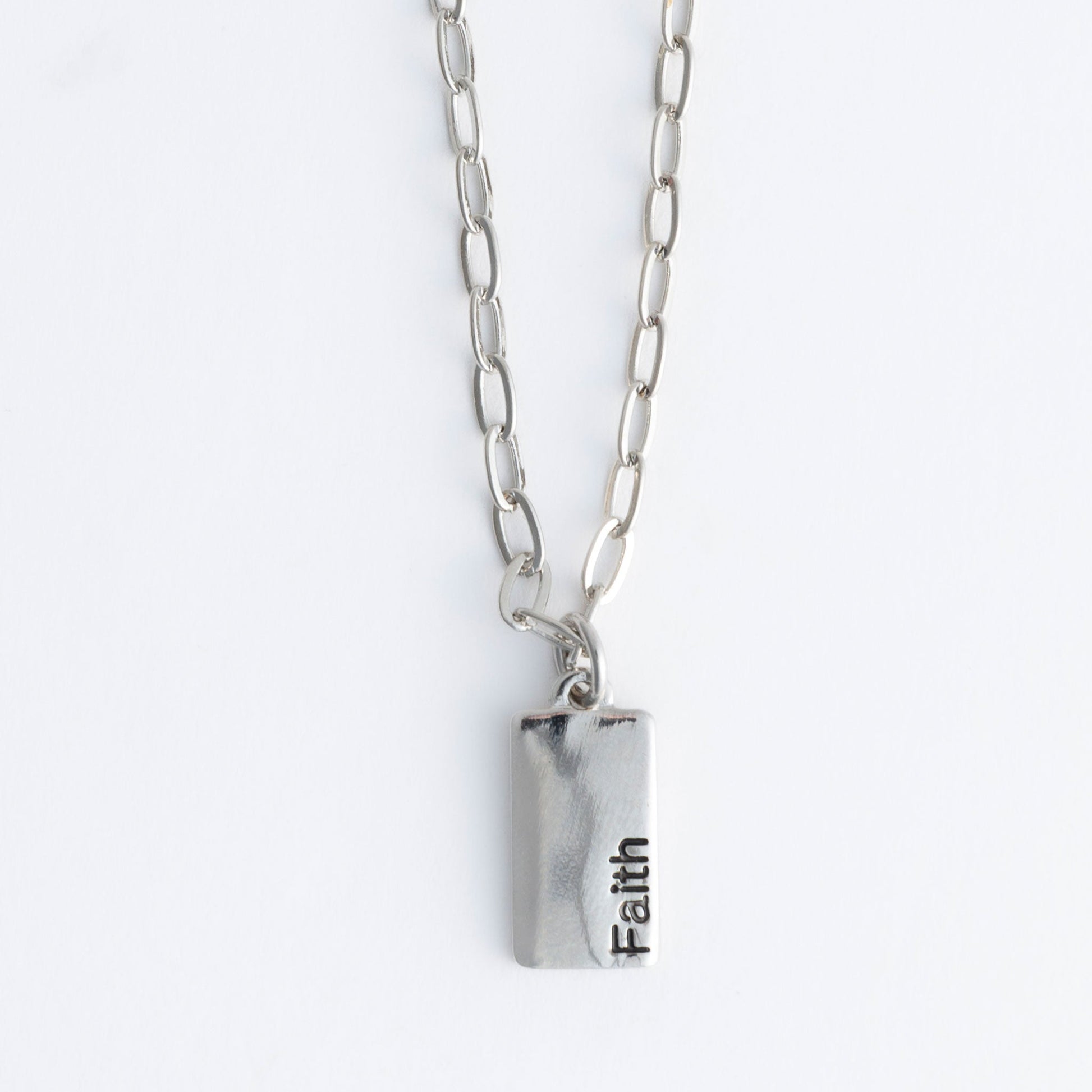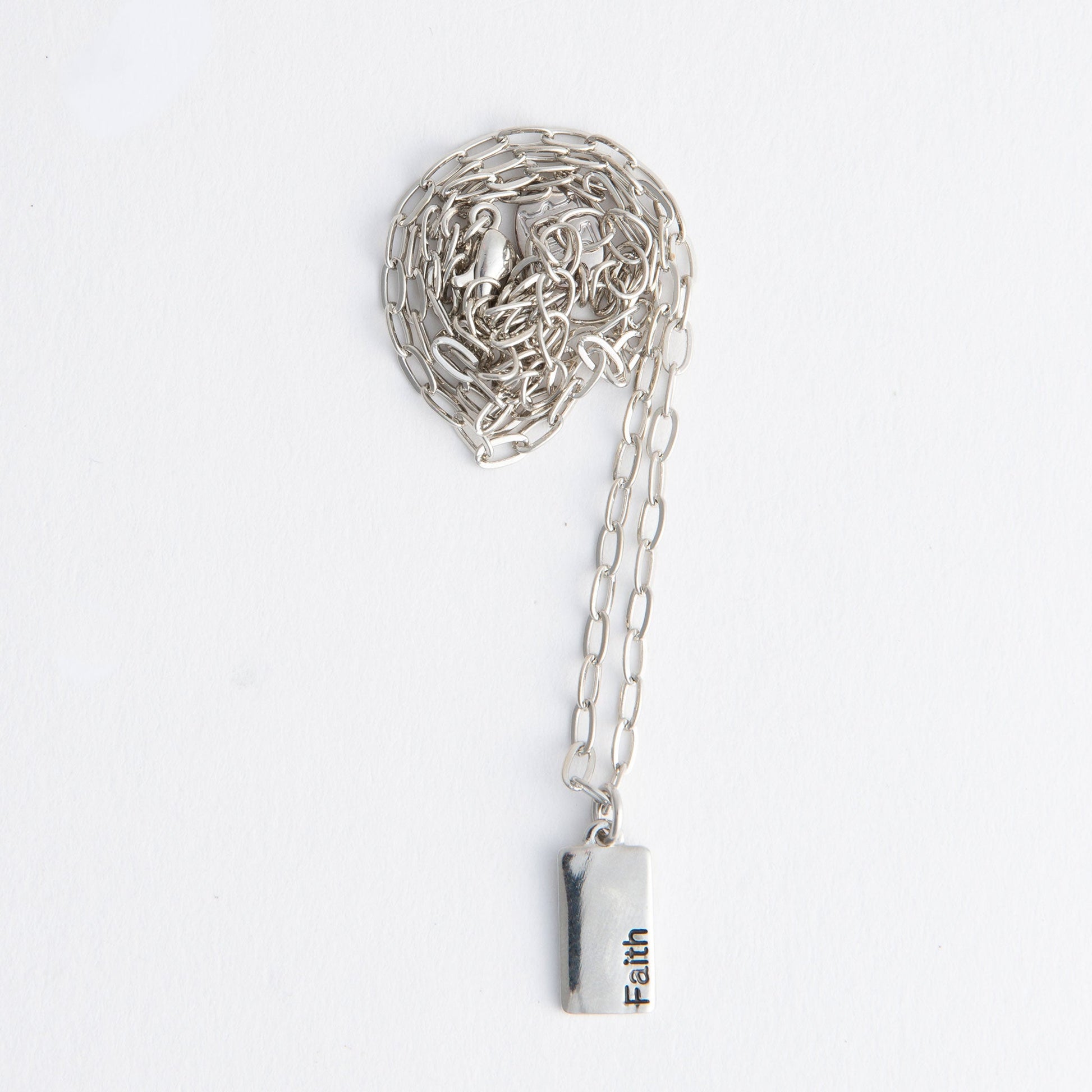 So lovely and sweet, the Amira Faith Greeting Card Necklace features an elegant silver pendant with the word 'Faith' etched into it on a delicate silver chain. Packaged on a vibrant watercolor card also emblazoned with the word 'Faith', this necklace makes for a thoughtful, meaningful gift.