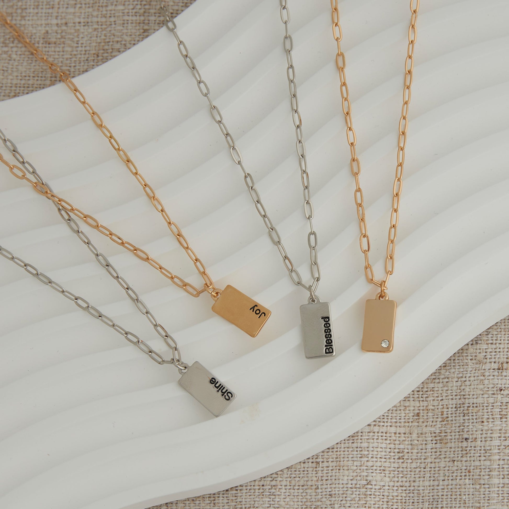 So lovely and sweet, the Amira Twinkle Greeting Card Necklace features an elegant pendant with the word 'Shine' etched into it on a delicate chain. Packaged on a vibrant watercolor card also emblazoned with the phrase 'Twinkle all the way', this necklace makes for a thoughtful, meaningful gift.