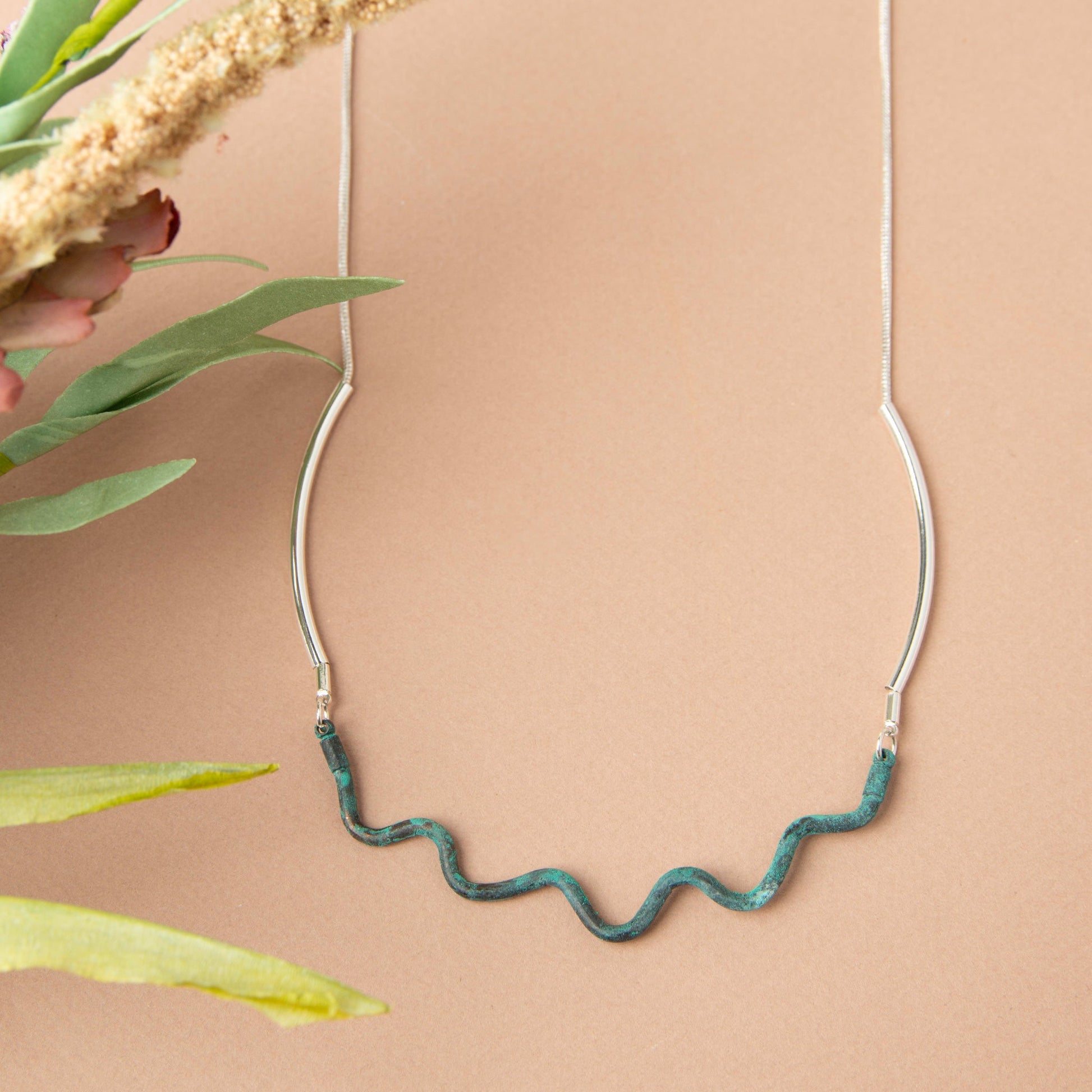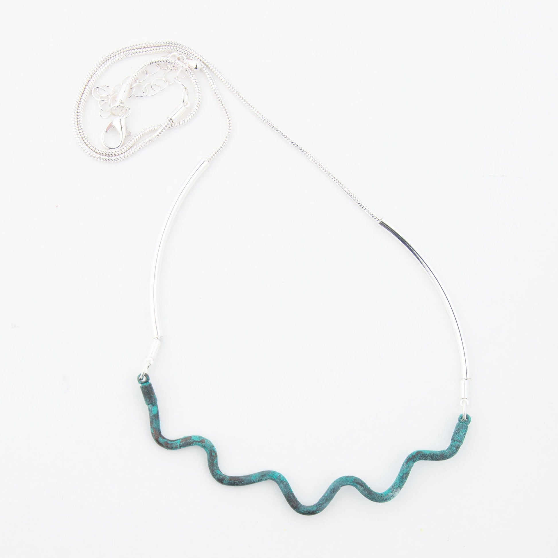 Artistic and whimsical, the Anjui Dainty Swirl Necklace is the perfect piece for your next event. Featuring two-toned mixed metals and a funky wavy design, this necklace is sure to turn heads.