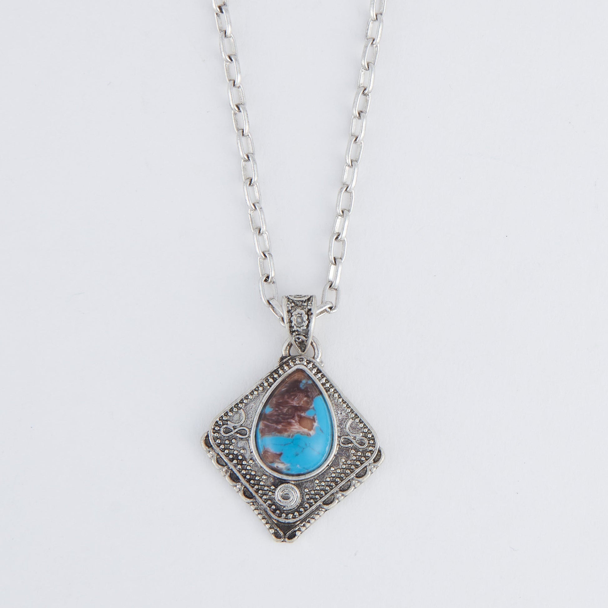 Create an effortlessly whimsical look with the Asteria Square Pendant Necklace. Featuring a delicate chain with stunning textured antique silver pendant with a vibrant stone cut into a teardrop shape, this stunner adds interest to any outfit.