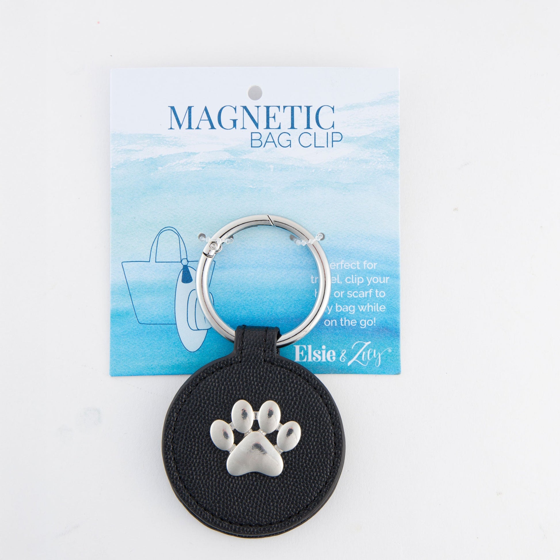 Stay organized with the Avisa Paw Print Magnetic Bag Clip. An essential for the traveler, this magnetic clip is stunning and allows you to effortlessly secure a hat or a scarf to your bag or purse. You won't know how you ever traveled without it!