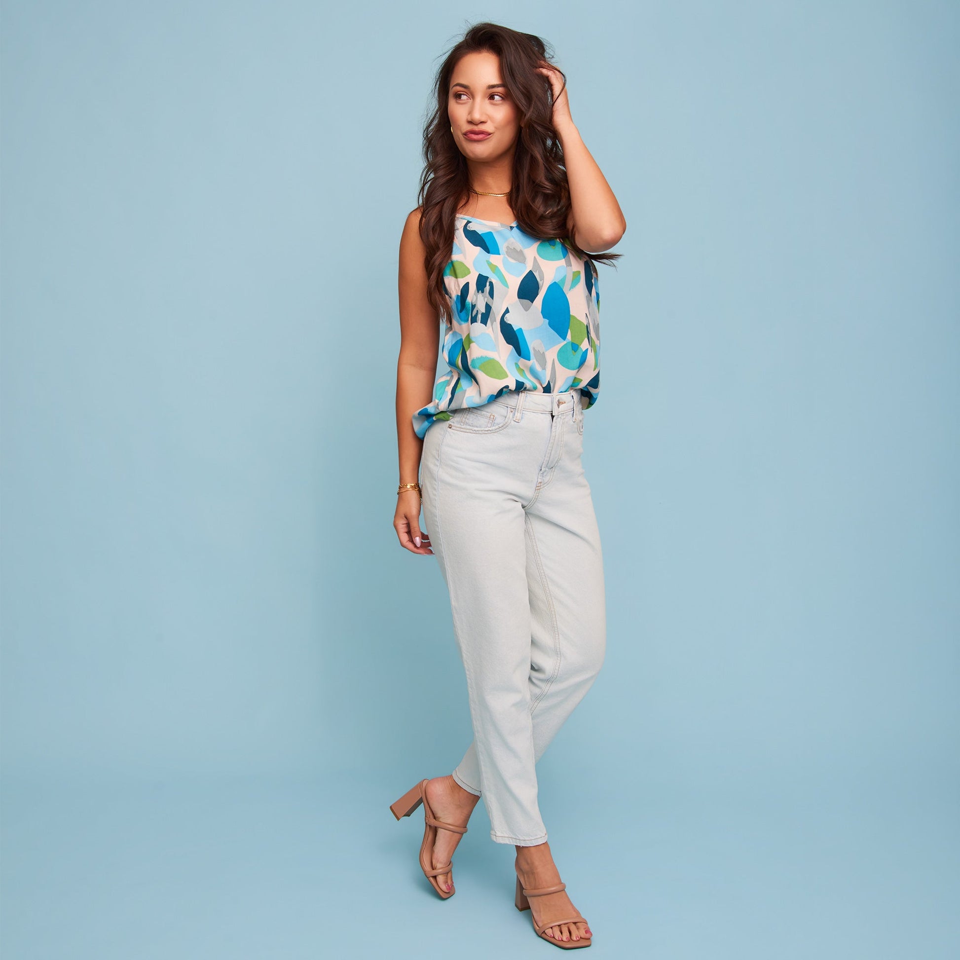 Lightweight, breezy, and endlessly versatile, the Ayla Wide Strap Tank Top is a summer essential designed for both comfort and style. Made from 100% flat rayon, it drapes beautifully for a flattering, flowy fit that moves with you throughout the day. The wide adjustable straps offer a secure, customizable fit, while the clean neckline and soft silhouette make this top perfect for layering or wearing solo. Available in two artful prints — Indigo Tide, featuring cool blue and green tones reminiscent of ocean waves, and Heatwave, a lively blend of coral and sunset hues — this tank top adds a pop of color and personality to any outfit. Pair it with linen pants, denim, or shorts for an effortlessly put-together look.