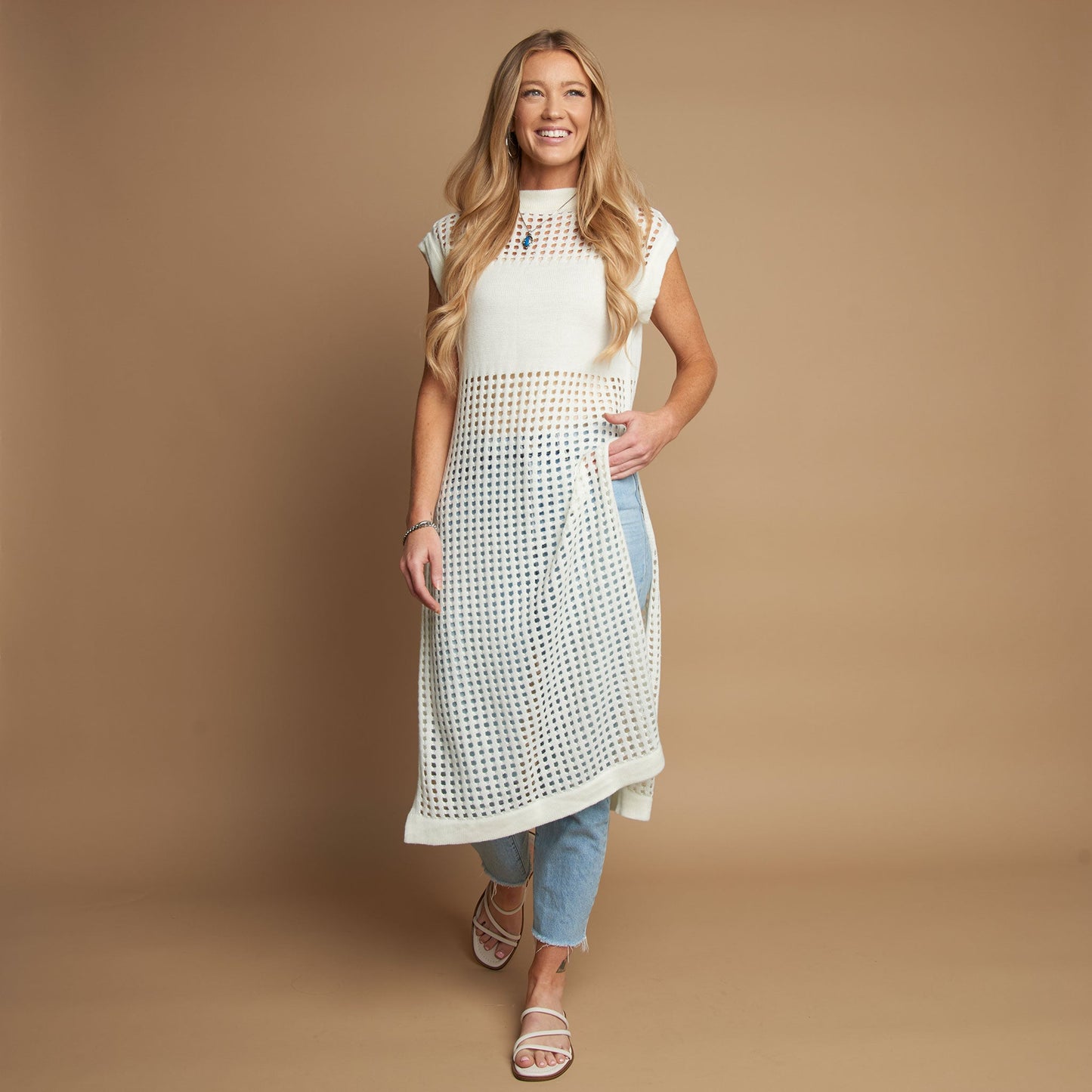 Azalea Sleeveless Longline Crochet Sweater