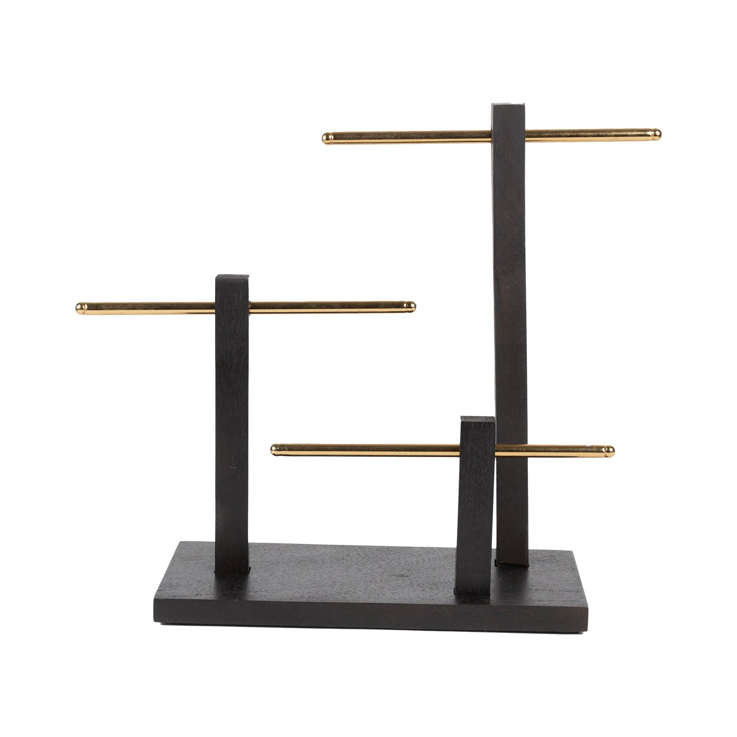 Display your jewelry in style with the Black Tiered Bar Display. Featuring a gorgeous black wood with three chic metallic bars for display, this piece makes organizing and storing jewelry a breeze.
