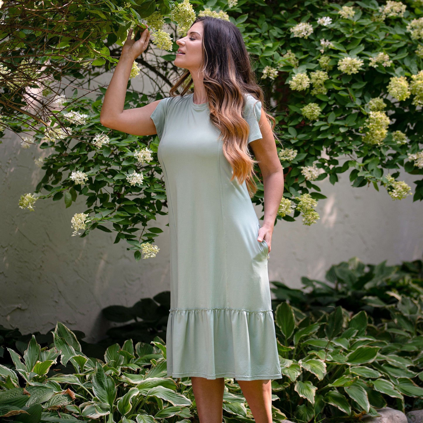 So cute for any occasion! Featuring soft colors, short sleeves, and an on-trend midi length with ruffle detail, the Brynn Ruffle Dress is an instant summer staple.