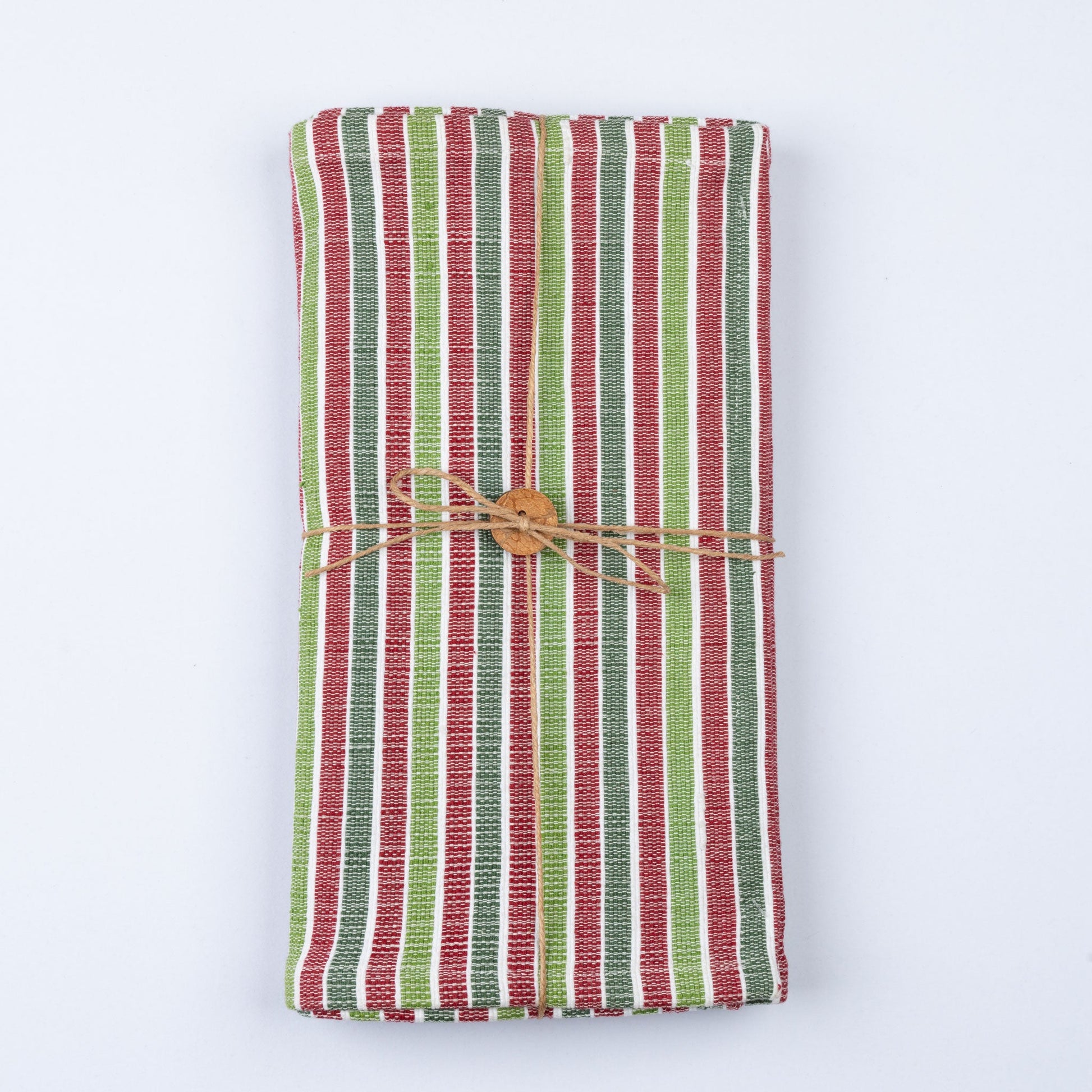 Add some interest to your dining table with the Candy Stripe Woven Table Runner. Featuring a rich green, red, and white stripe design in a 100% woven cotton, this table runner adds color and charm to any dining room.