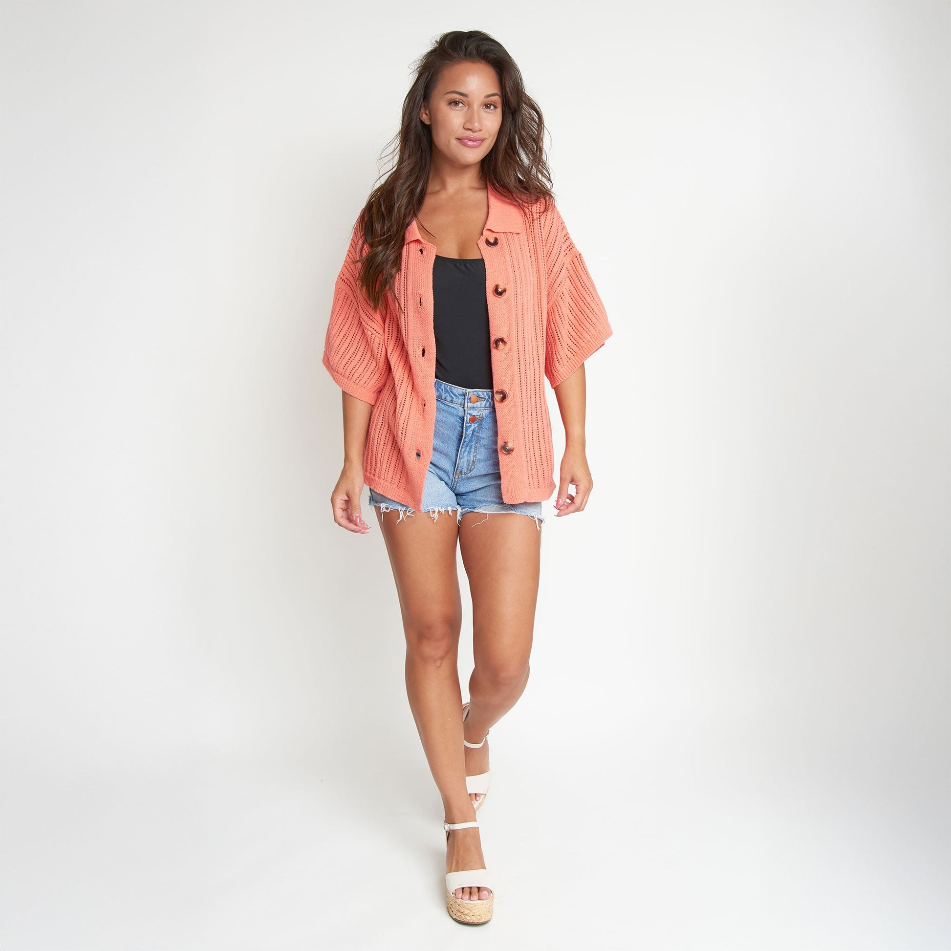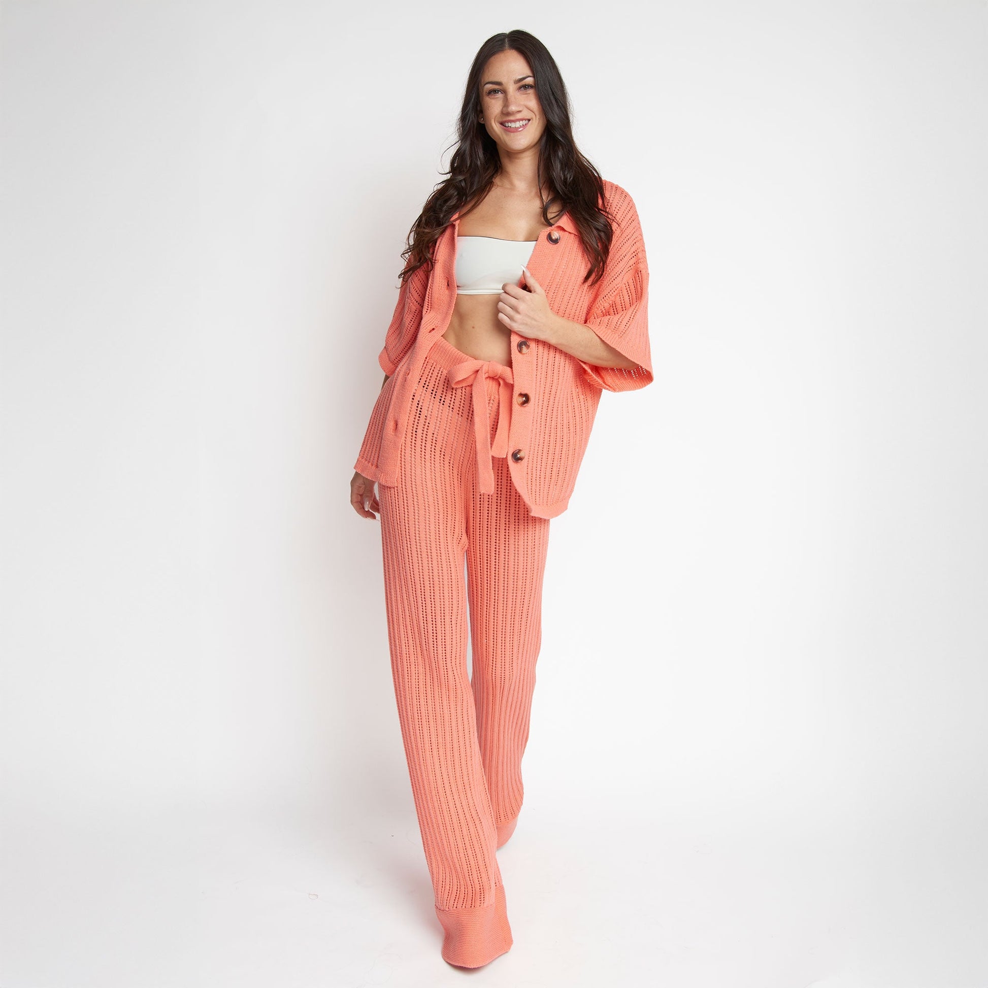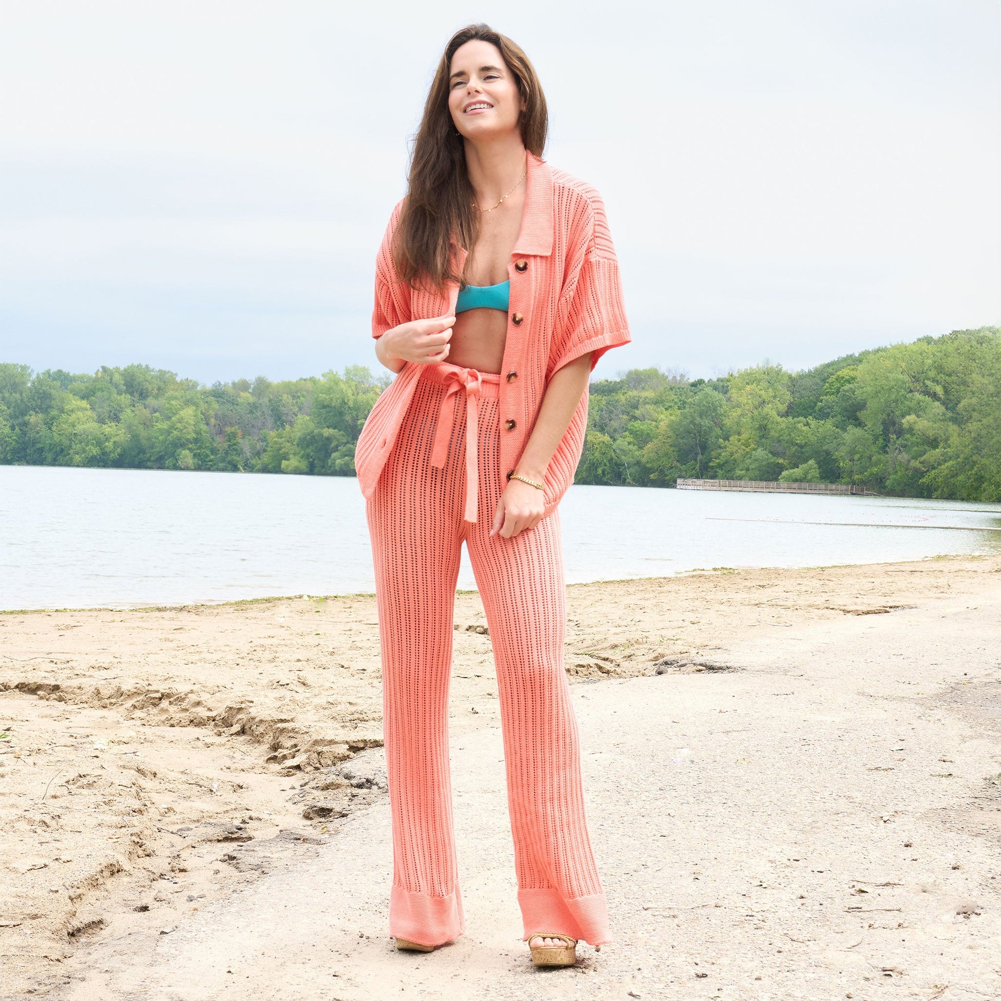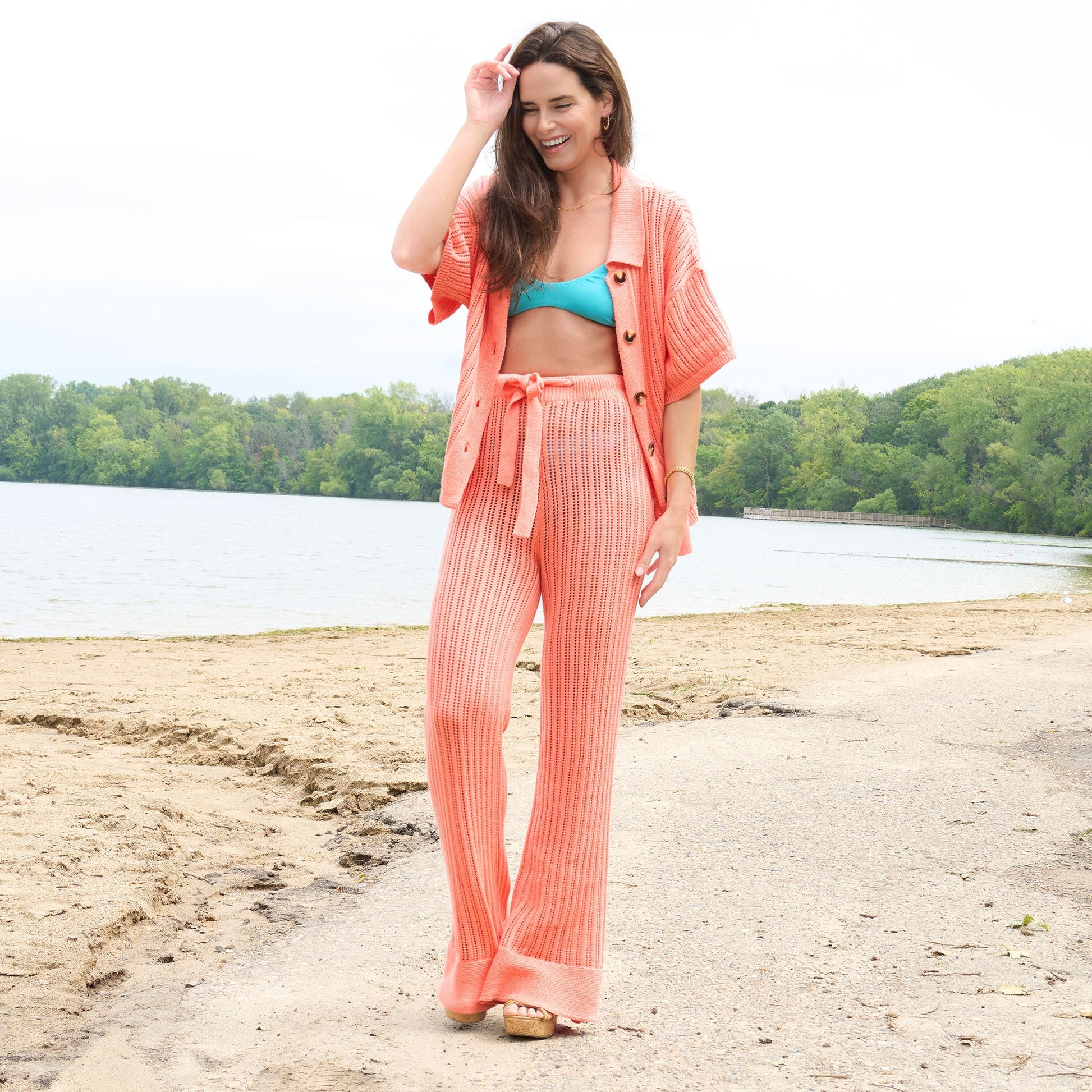 Easy and breezy! The Catalina Short Sleeve Cover Up Top is a stunning, easy to wear, open knit cover up perfect for everything from a day at the beach to lounging inside. Pair it with the matching Catalina Wide Leg Beach Pants for an effortless, on-trend look.