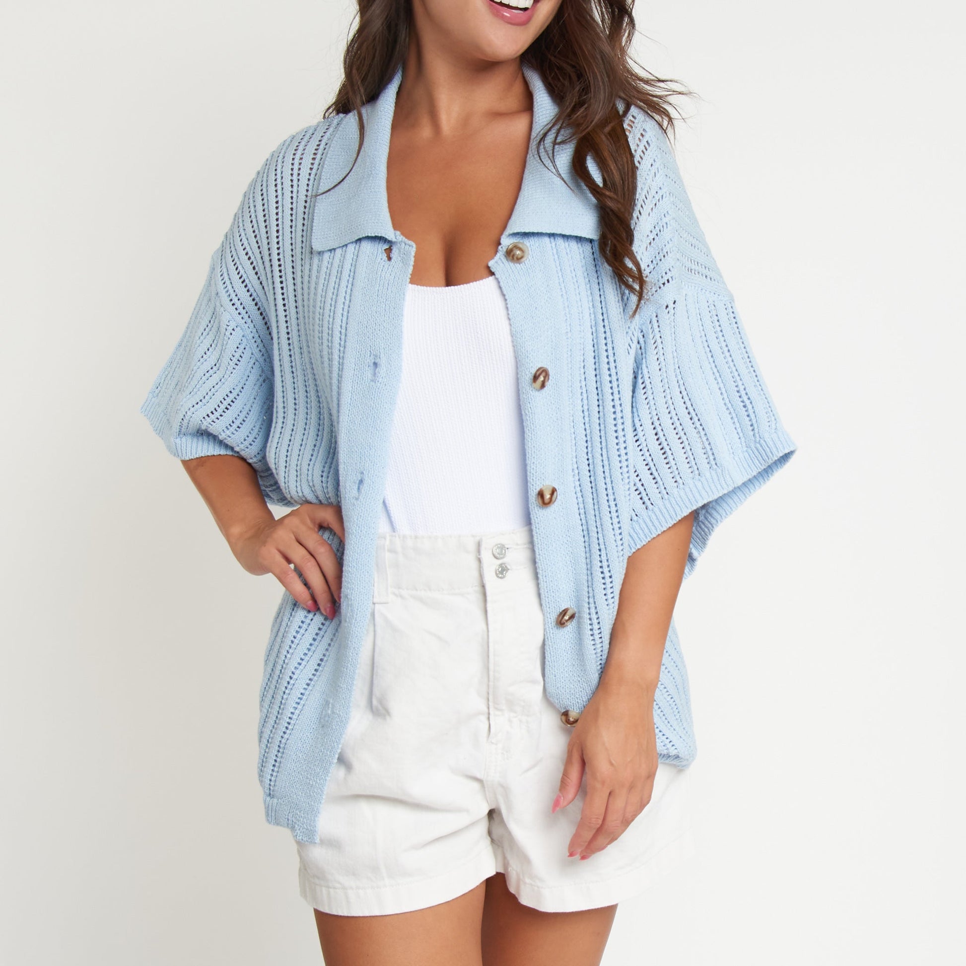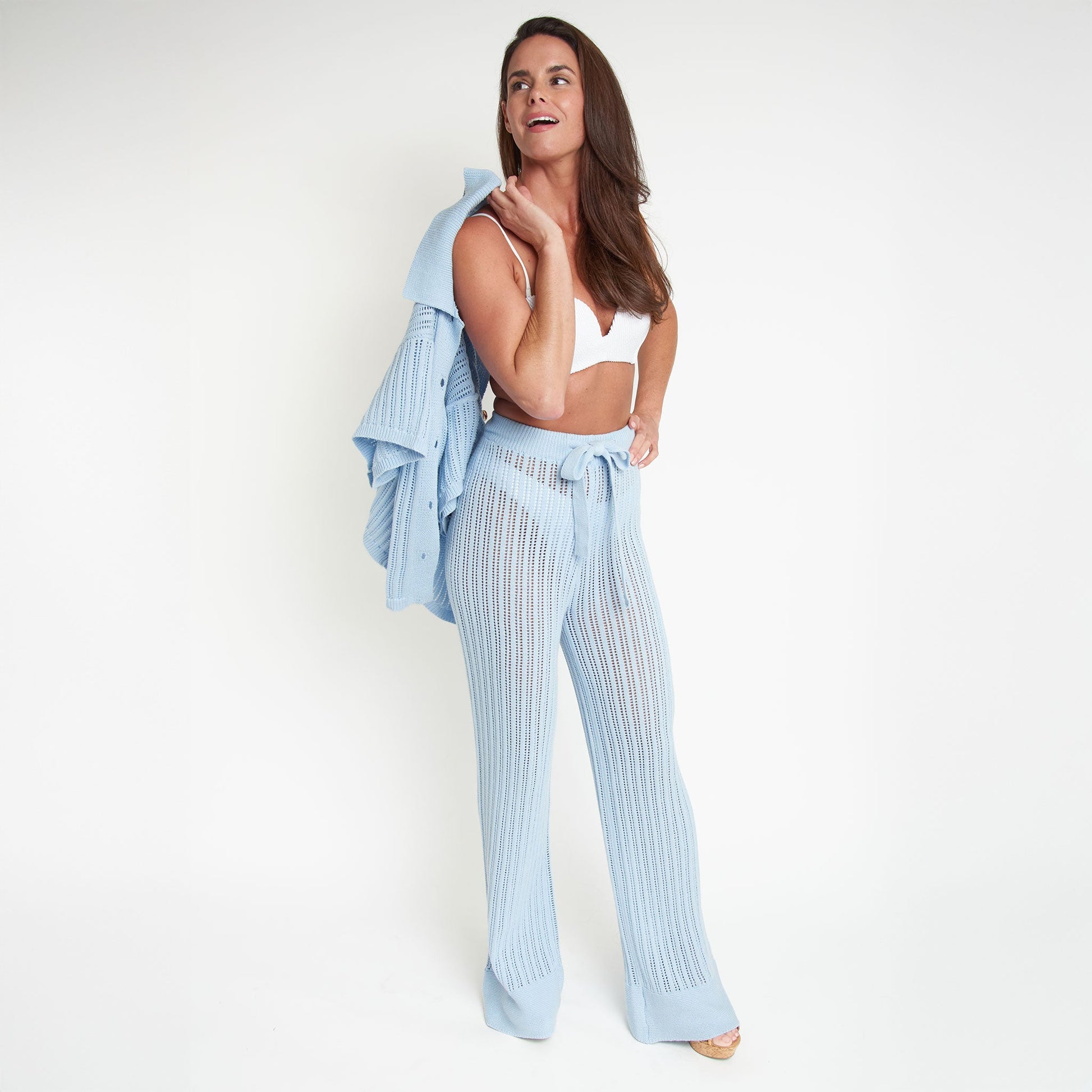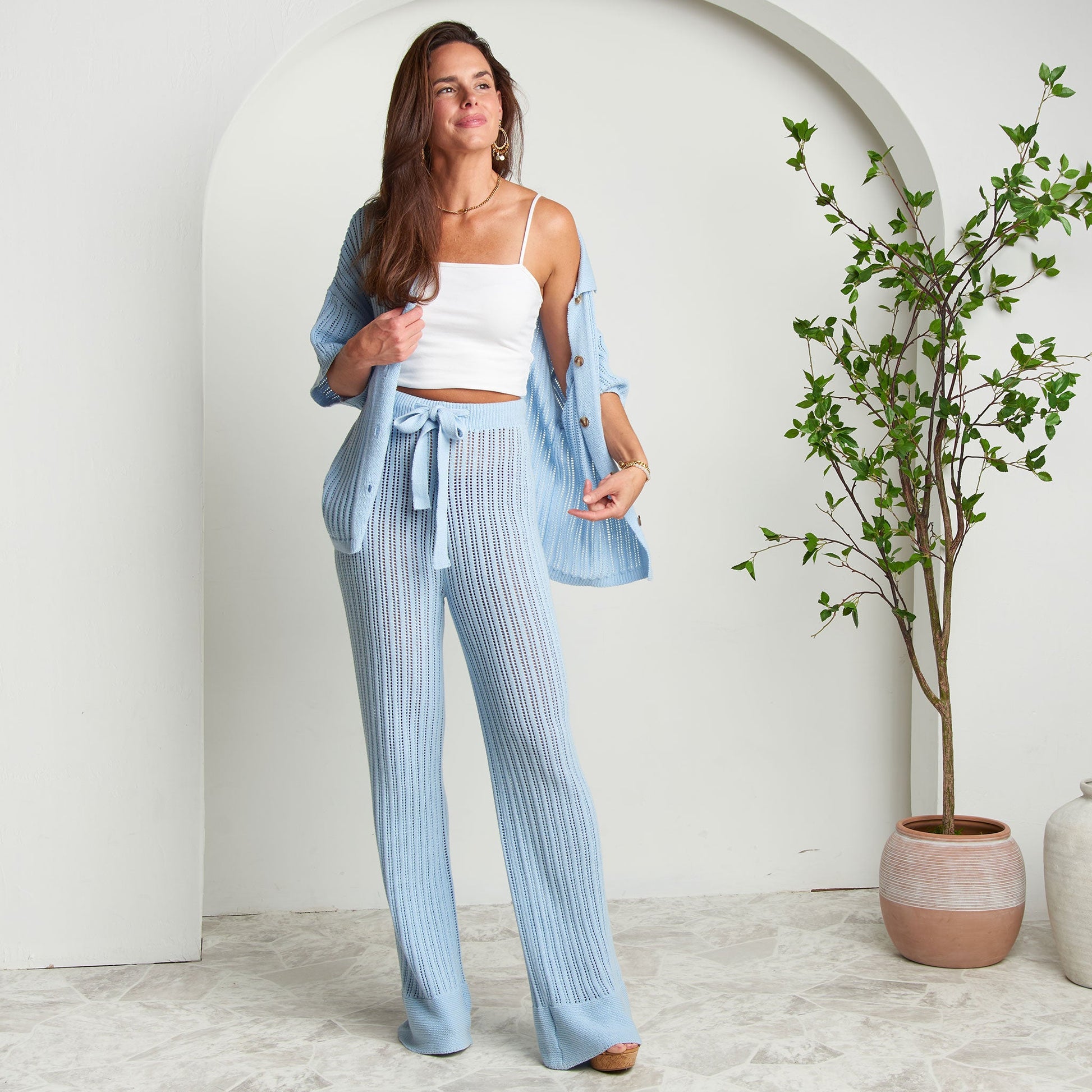Easy and breezy! The Catalina Short Sleeve Cover Up Top is a stunning, easy to wear, open knit cover up perfect for everything from a day at the beach to lounging inside. Pair it with the matching Catalina Wide Leg Beach Pants for an effortless, on-trend look.