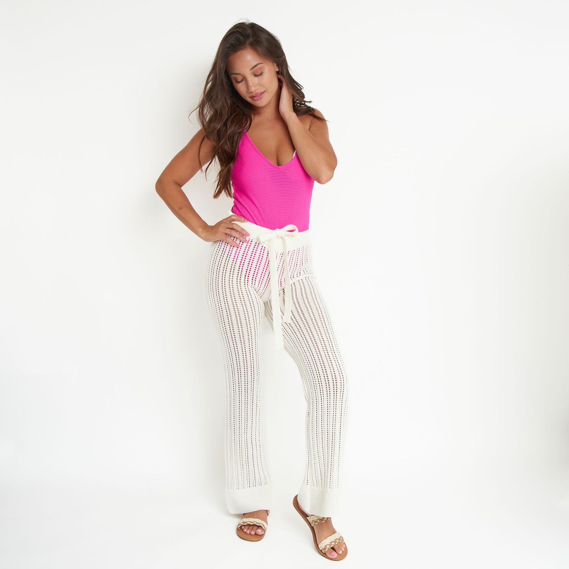 Easy and breezy! The Catalina Wide Leg Beach Pants are a gorgeous, easy to wear, open knit pant perfect for everything from a day at the beach to lounging inside. Pair with the Catalina Short Sleeve Cover Up Top for an effortless, on-trend look.
