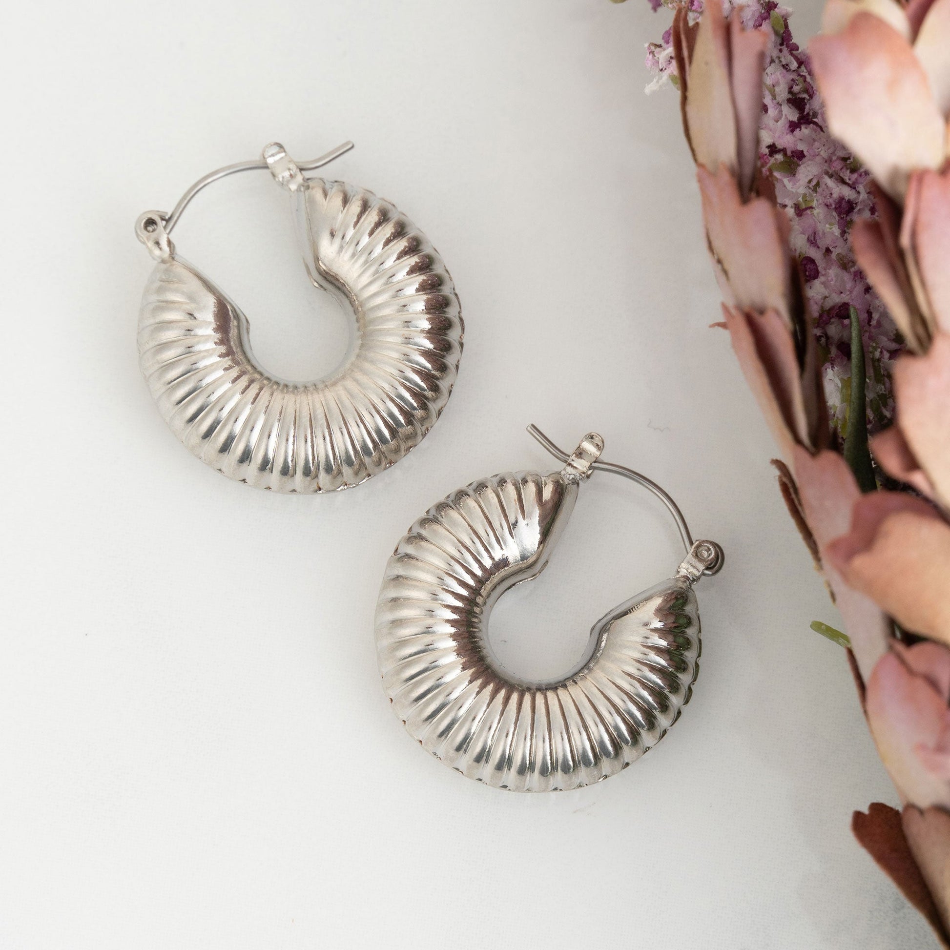 An elevated classic, the Small Textured Hoop Earrings feature a timeless hoop design in elegant silver. The chunky, textured detailing of each hoop makes these stand out. Easy to style, these cuties are perfect for every day wear.