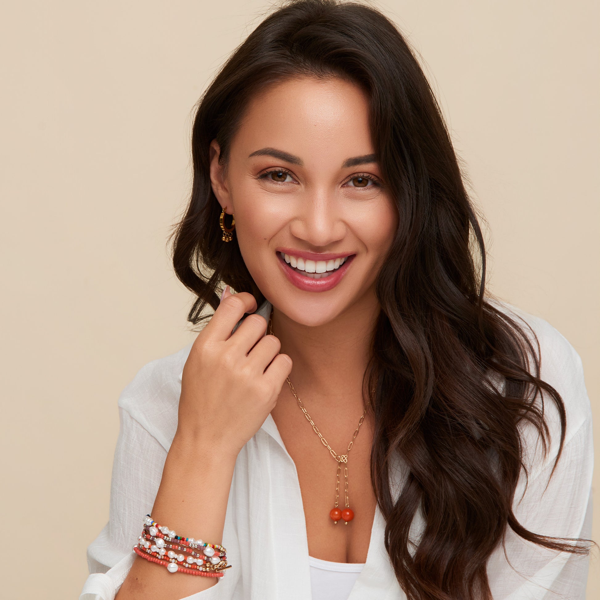 Coral Seed Bead And Pearl Layered Toggle Bracelet