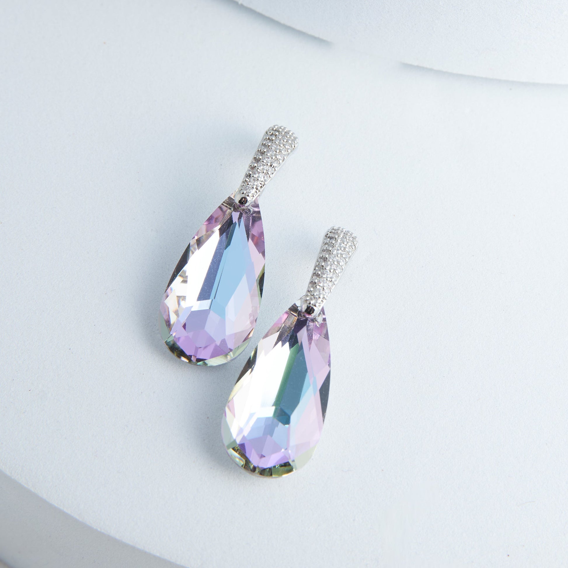 Add a touch of modern elegance to any outfit with the Coraline Teardrop Gemstone Earrings. Featuring stunning lavender toned faceted crystals cut into teardrop shapes and hung from shimmering pave silver hooks, these earrings are sure to make a statement.