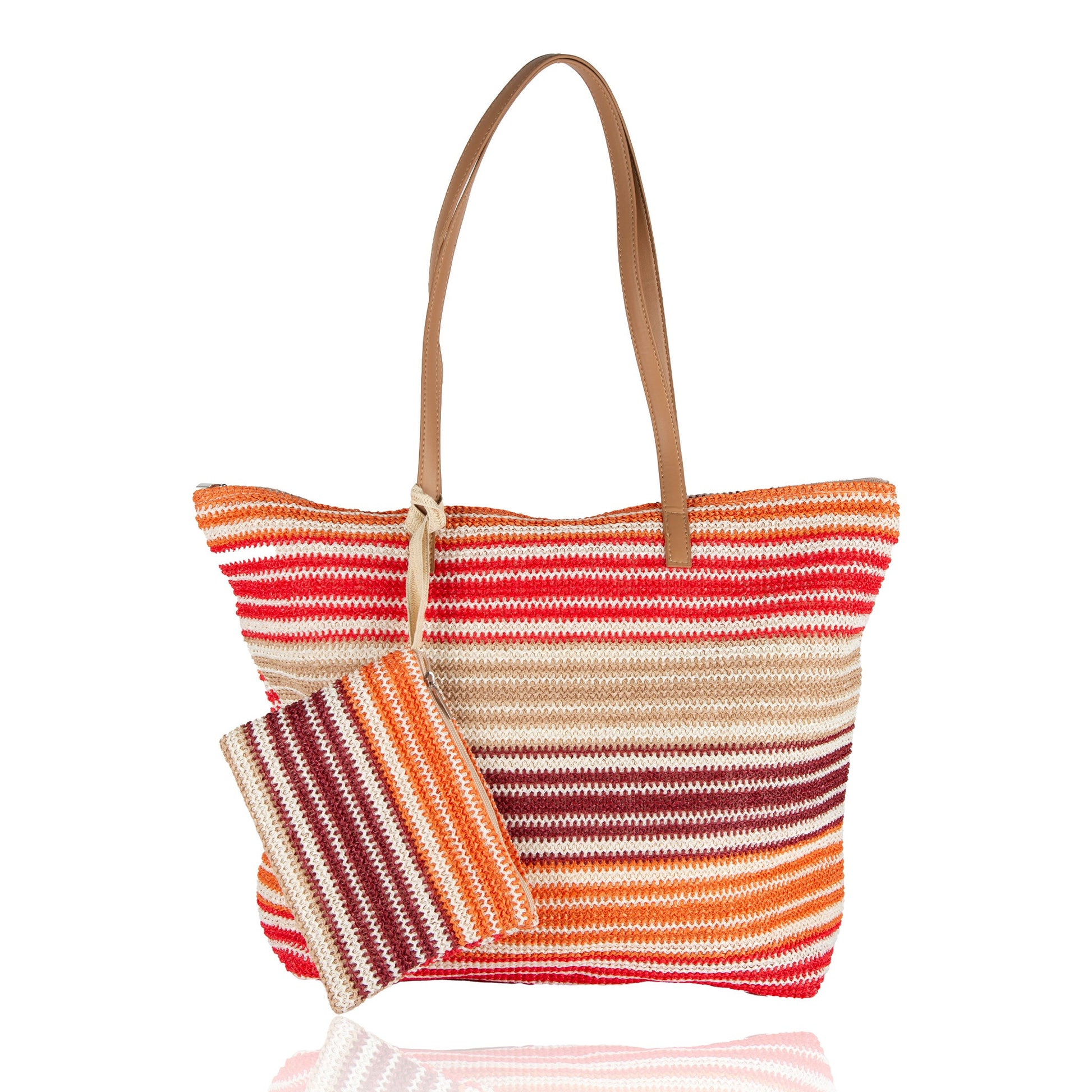 The only beach bag you'll ever need! Featuring a vibrant colorful stripe design, spacious interior, and matching coin purse, the Dominica Striped Beach Tote will take your beach look from dull to fun!