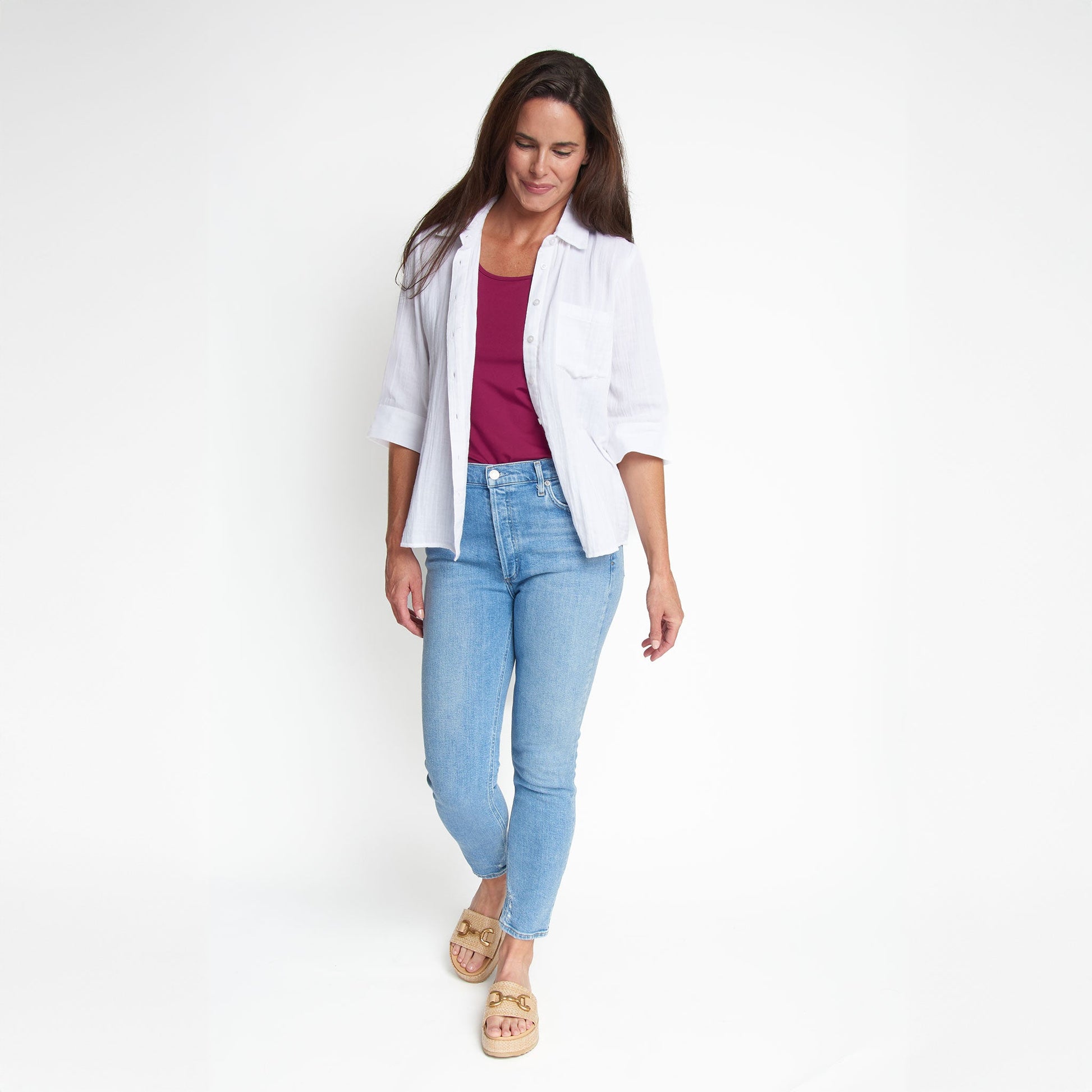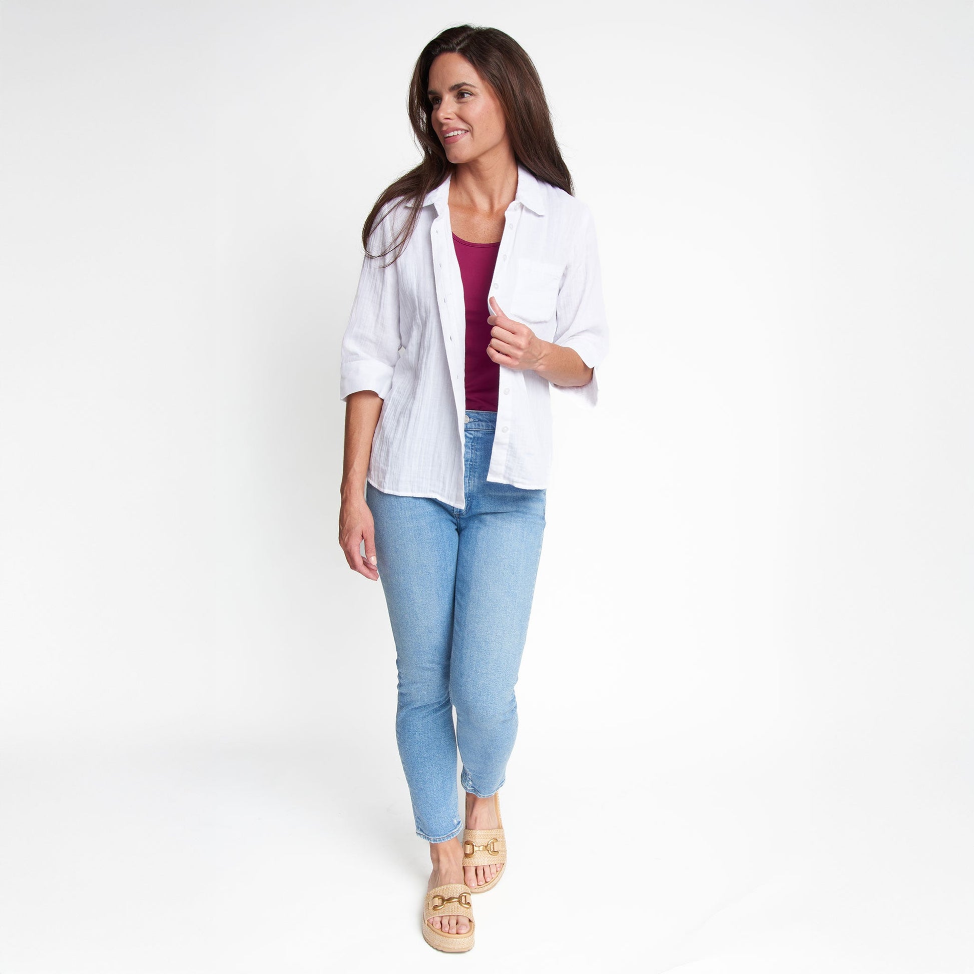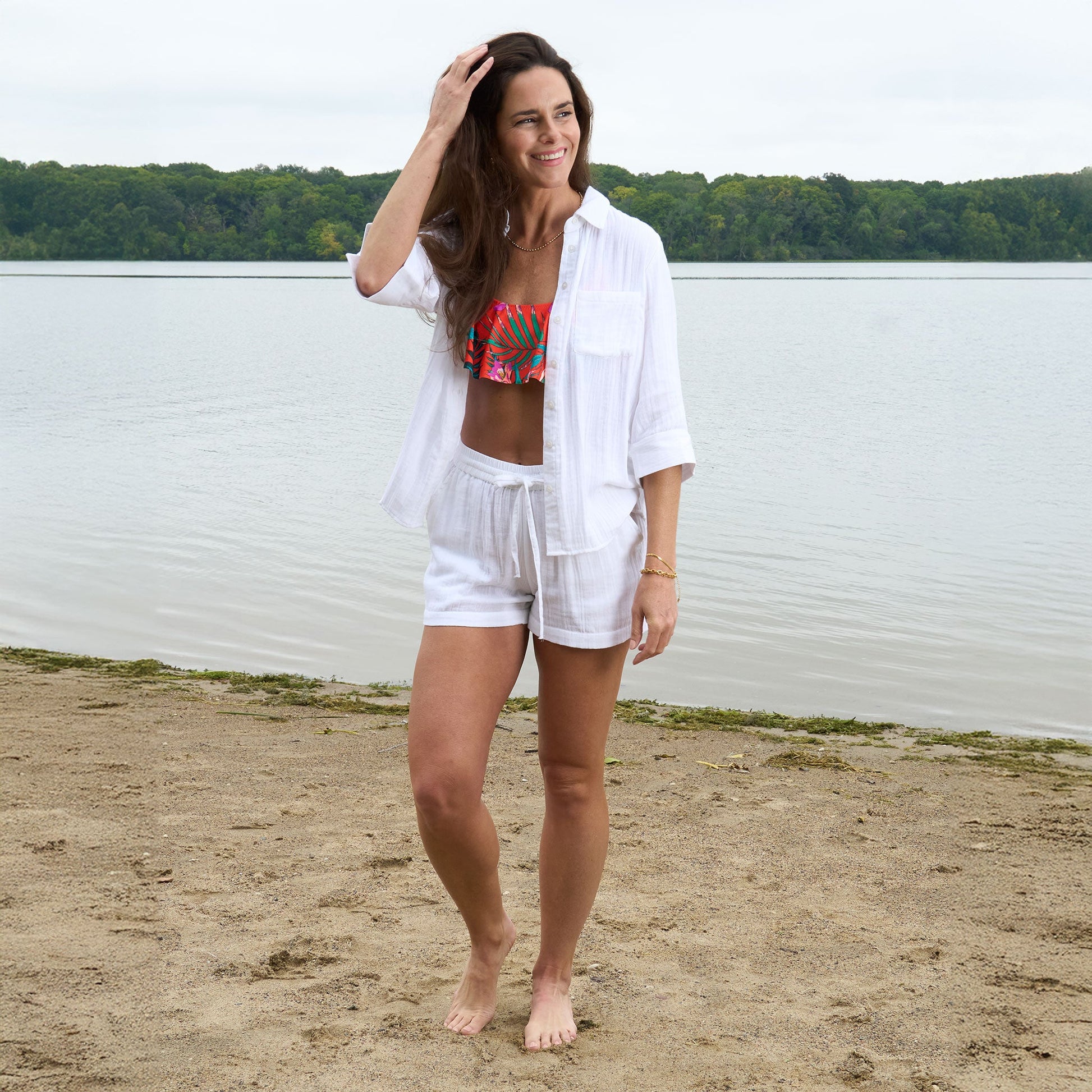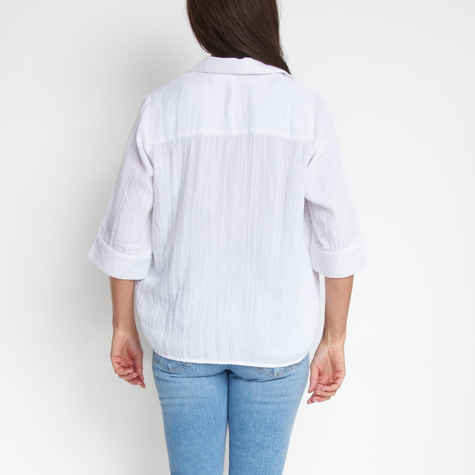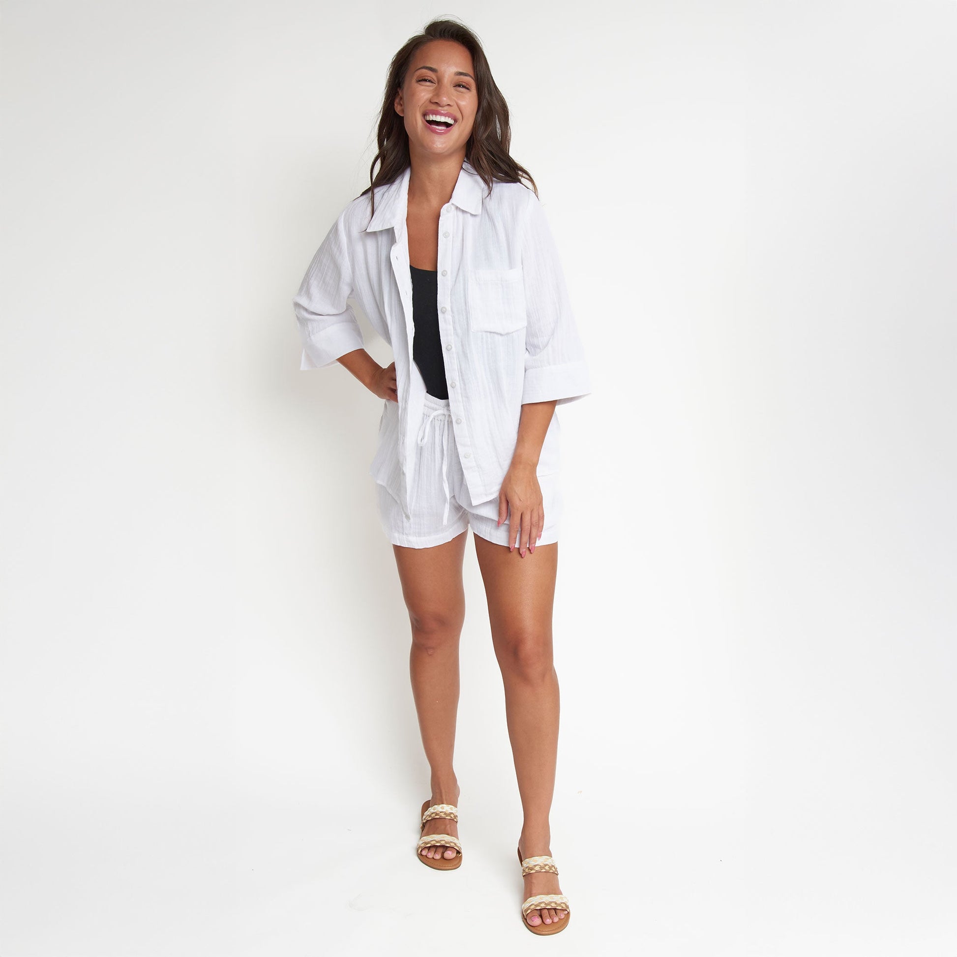 Chic and comfortable, the Dylan Gauze Button Up Top features a comfortable cotton gauze fabric with three quarter sleeves, relaxed fit, and on-trend coloring. Pair it with the Dylan Gauze Shorts for a chic matching set, or with your favorite bottoms for an easy, effortless look.