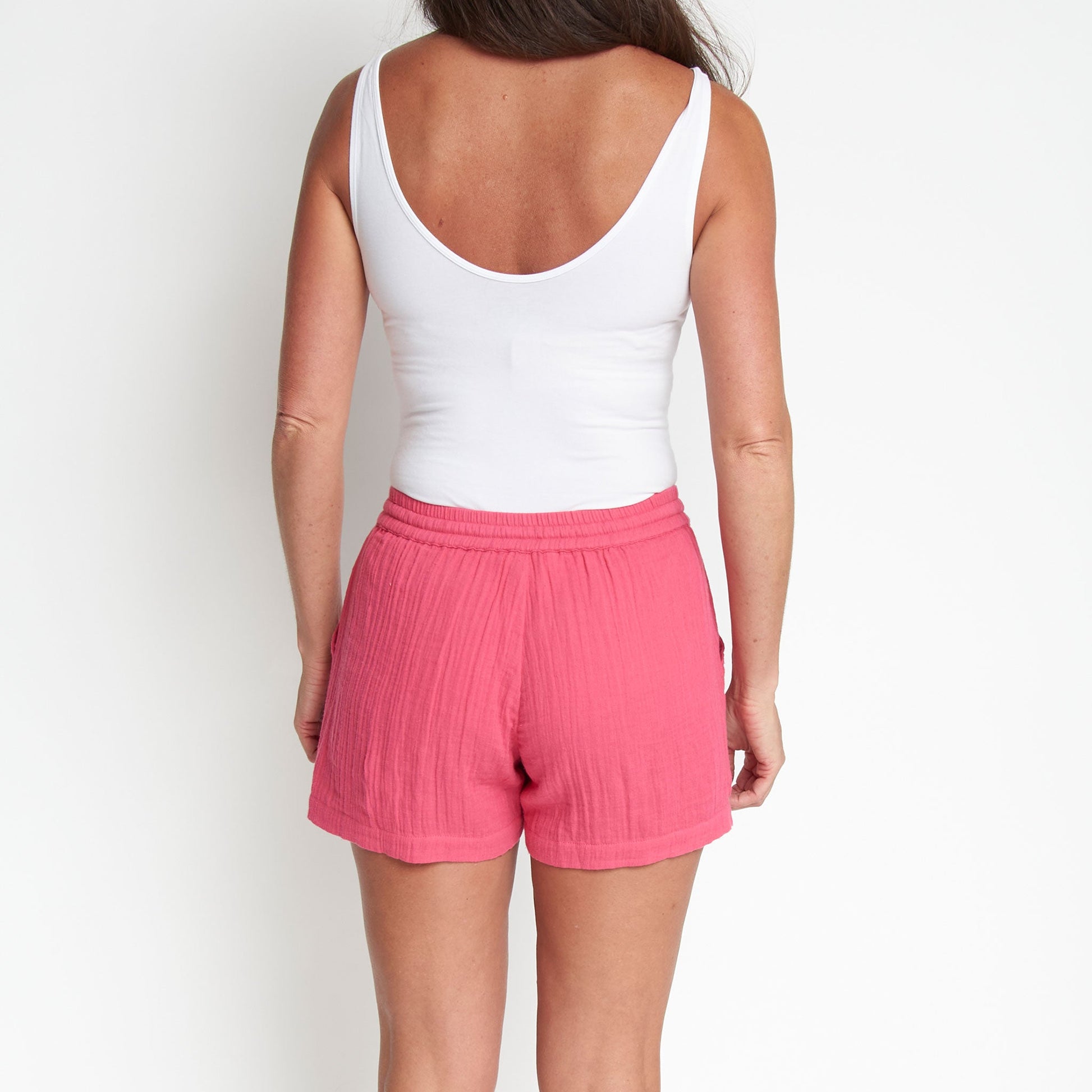Chic and comfortable, the Dylan Gauze Shorts features a comfortable cotton gauze fabric with a comfortable elastic waistline and drawstring tie, relaxed fit, and pockets. Pair them with the Dylan Gauze Button Up Top for a chic matching set, or with your favorite tee or tank for an easy, effortless look.