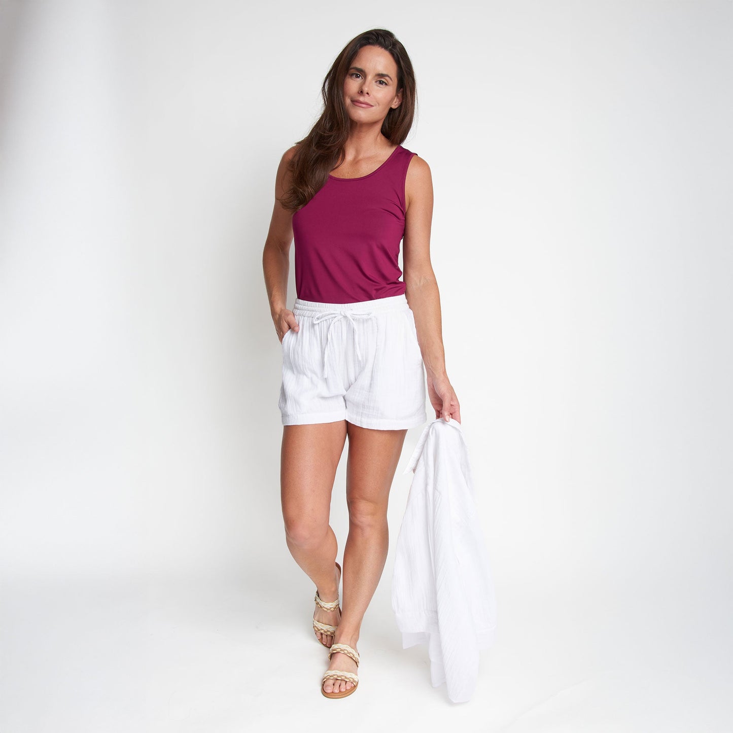 Chic and comfortable, the Dylan Gauze Shorts features a comfortable cotton gauze fabric with a comfortable elastic waistline and drawstring tie, relaxed fit, and pockets. Pair them with the Dylan Gauze Button Up Top for a chic matching set, or with your favorite tee or tank for an easy, effortless look.