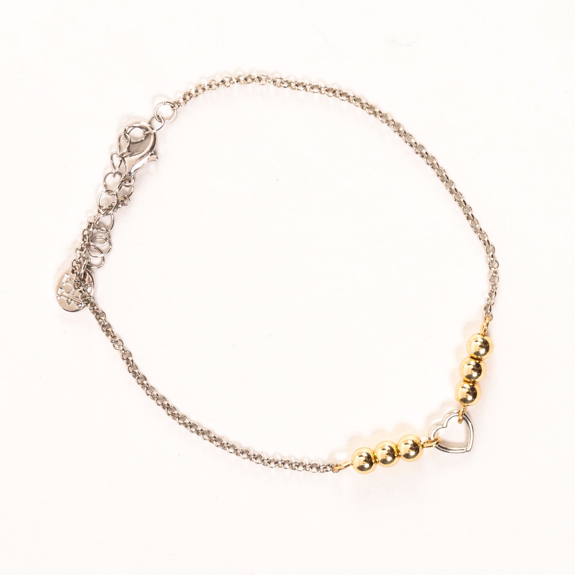 A perfect summer accessory! Featuring a classic silver chain with delicate golden beads and heart charm, the Alexis Beaded Heart Anklet completes any look.