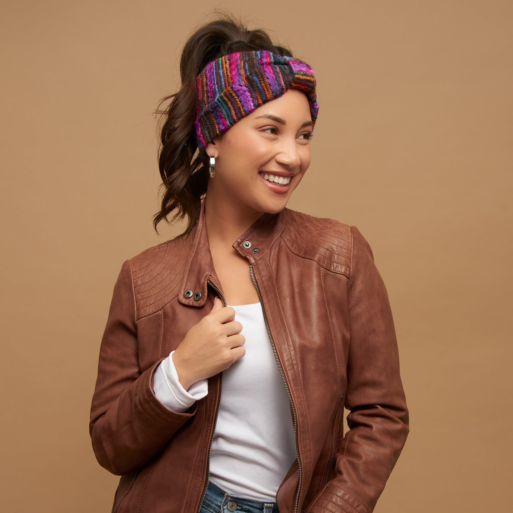 Stay cozy in style with the Emmy Striped Knotted Winter Headband. With a vibrant striped design and adorable knotted detailing, this headband will keep you both warm and cute all winter long.