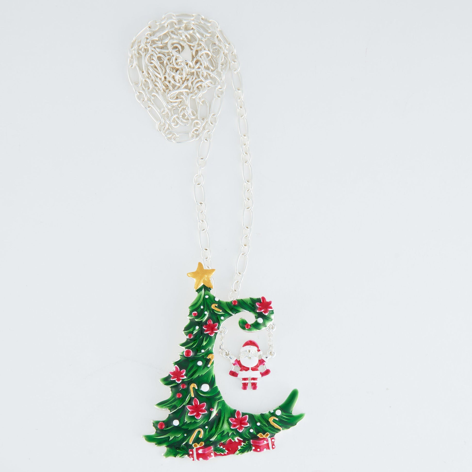 Enamel Santa Swing Christmas Tree Pendant Necklace