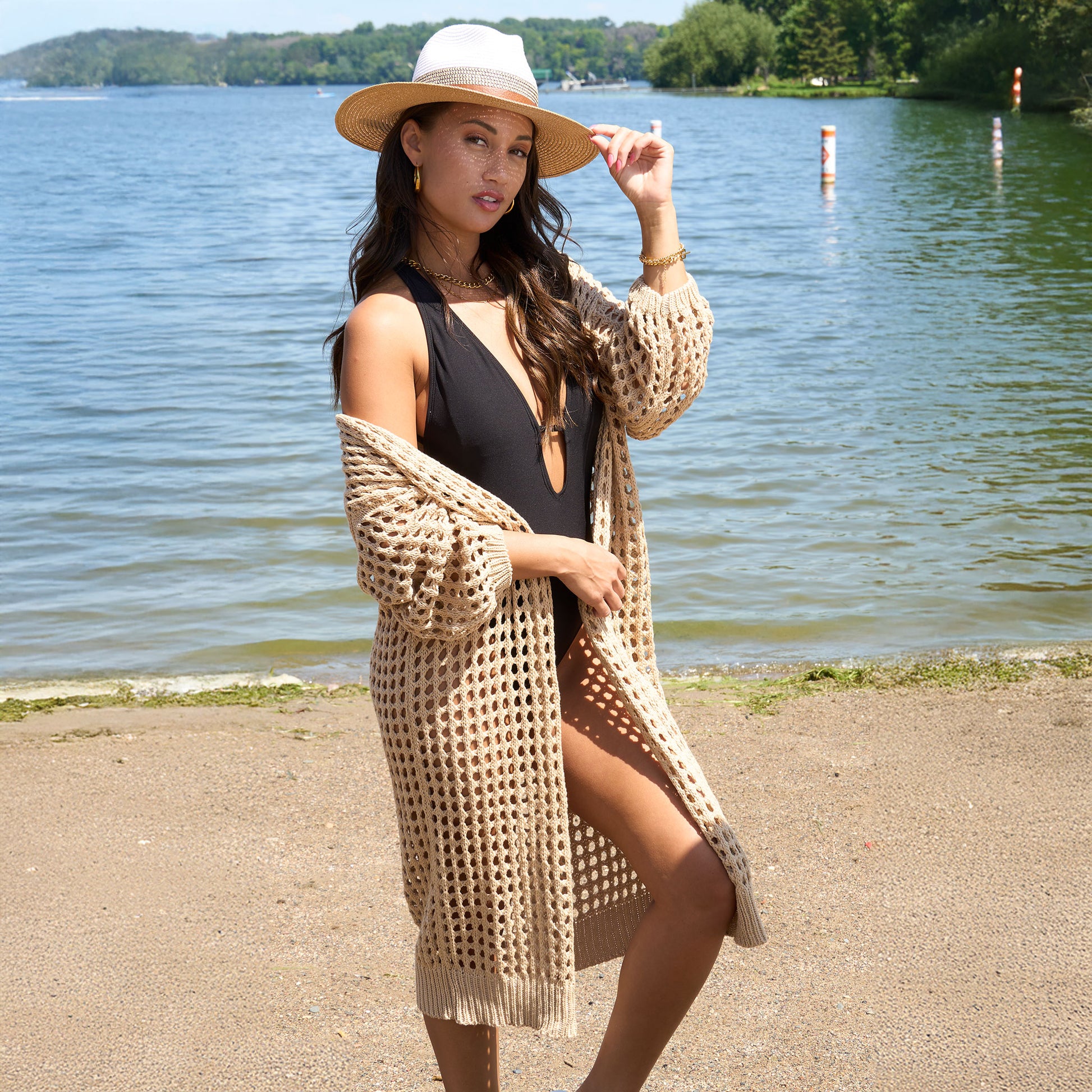 Beat the chill in style with the Enya Long Crochet Cardigan. Featuring a trendy neutral tan tone with an open crochet detail, this cardigan is easy to wear and certain to become your spring go-to.