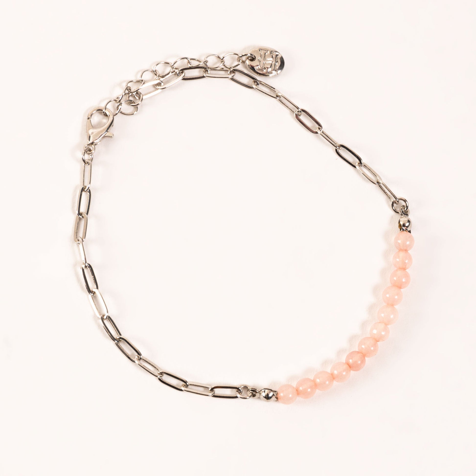 A perfect summer accessory! Featuring a trendy silver chain and a delicate row of genuine rose quartz stone beads, the Alexis Beaded Chain Anklet completes any look.